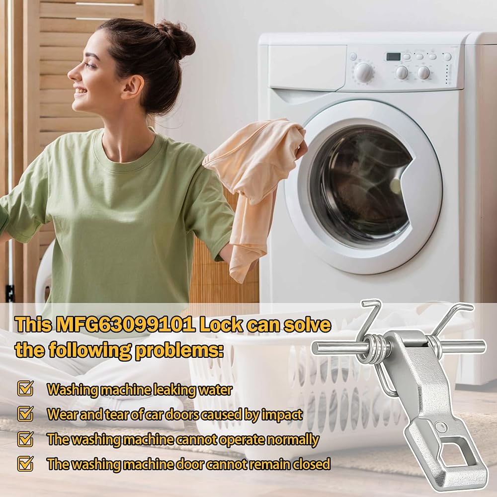 • MFG63099101 Washer Door Hook Locker Fit for Ken-more Washing Machines: 79641162410, 79641262610, 79641283310, 79641302610, 79641382410, 79641383410, 79641392510, 79641162411,79641162211, 79641262611, 79641282311, 79641382411, 79641383411, 79641392511,etc