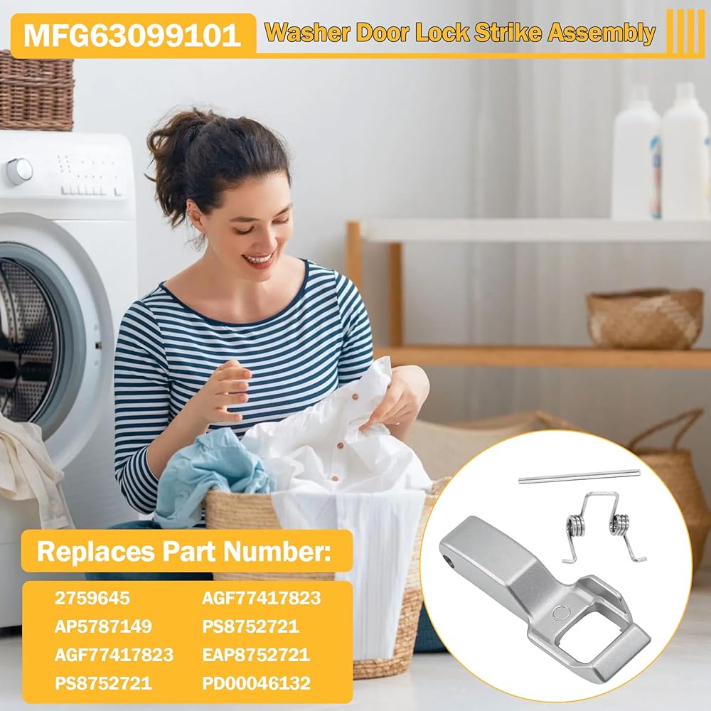 • MFG63099101 Washer Door Lock Strike Assembly Replaces Part Number:2759645,AP5787149,AGF77417823PS8752721,AGF77417823, PS8752721, EAP8752721, PD00046132,etc