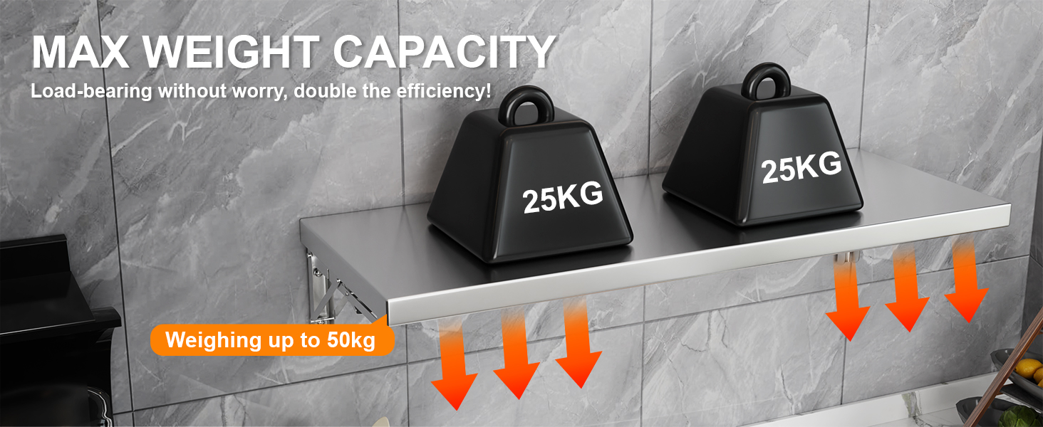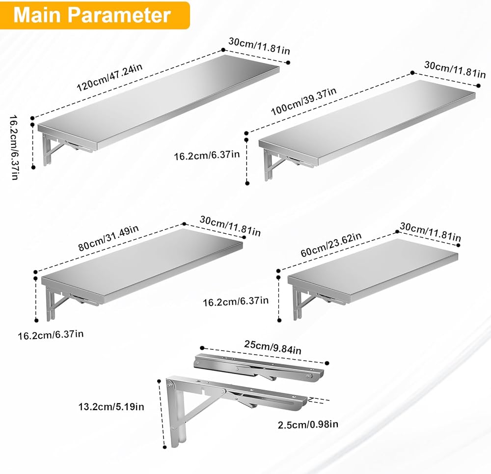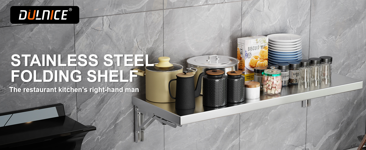 • هيكل عالي الجودة: رف جداري من الفولاذ المقاوم للصدأ مصنوع من الفولاذ المقاوم للصدأ 201 القوي بسمك لوح 0.8 مم، يضمن رف الحائط القابل للطي هذا قوة استثنائية ومتانة ومقاومة للتآكل والصدأ. سطحه سهل التنظيف يجعله مثاليًا للبيئات ذات الحركة المرورية العالية مثل المطابخ التجارية وشاحنات الطعام.