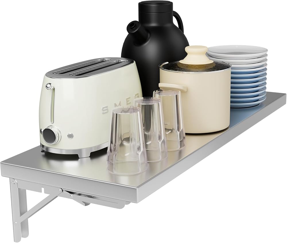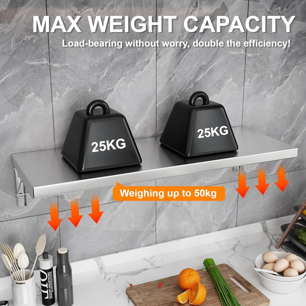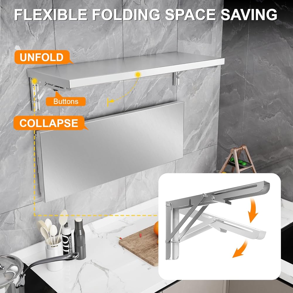 رف جداري قابل للطي مقاس 31.5 بوصة × 12 بوصة، طاولة قابلة للطي مثبتة على الحائط من الفولاذ المقاوم للصدأ، سعة 110 رطل، رف امتياز عائم لشاحنات الطعام، نوافذ المقطورة، المطبخ، المطعم، غرفة مرافق المرآب