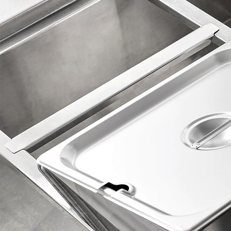 PERFECT SIZE, Top length 20-15/16" Bottom length 19-15/16" stainless steel adaptor bars fit effortlessly with 1/2 size food pan or portion steam table plates, meanwhile Prevents steam loss and reduces energy consumption, also suitable for refrigerator or food storage cabinet