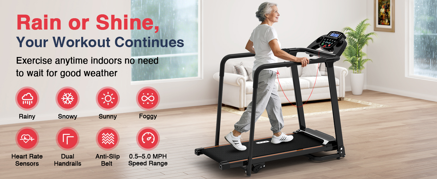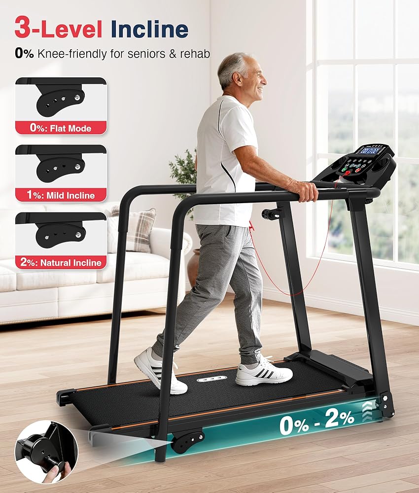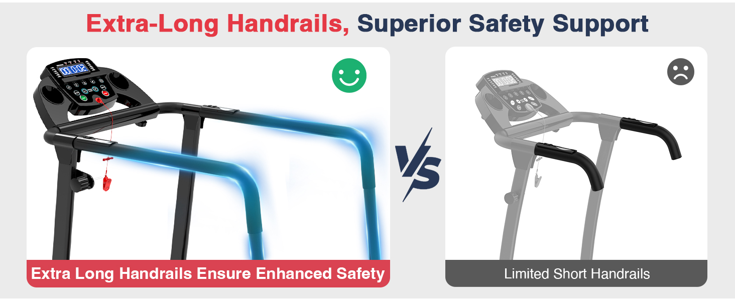 【درابزين طويل جدًا لدعم آمن】- مثالي كجهاز مشي لكبار السن، يتميز جهاز المشي هذا بدرابزين مريح طويل جدًا يمتد على نطاق واسع للحصول على دعم موثوق لكامل الجسم. يتناسب تصميمه الممتد مع أوضاع الإمساك الطبيعية، مما يوفر توازنًا ثابتًا أثناء التمارين - وهو مثالي لكبار السن أو مستخدمي إعادة التأهيل أو المبتدئين الذين يحتاجون إلى المزيد من الأمان. باعتباره جهاز مشي عمليًا مائلًا، فإنه يمزج بين الدعم الآمن والتصميم العملي.