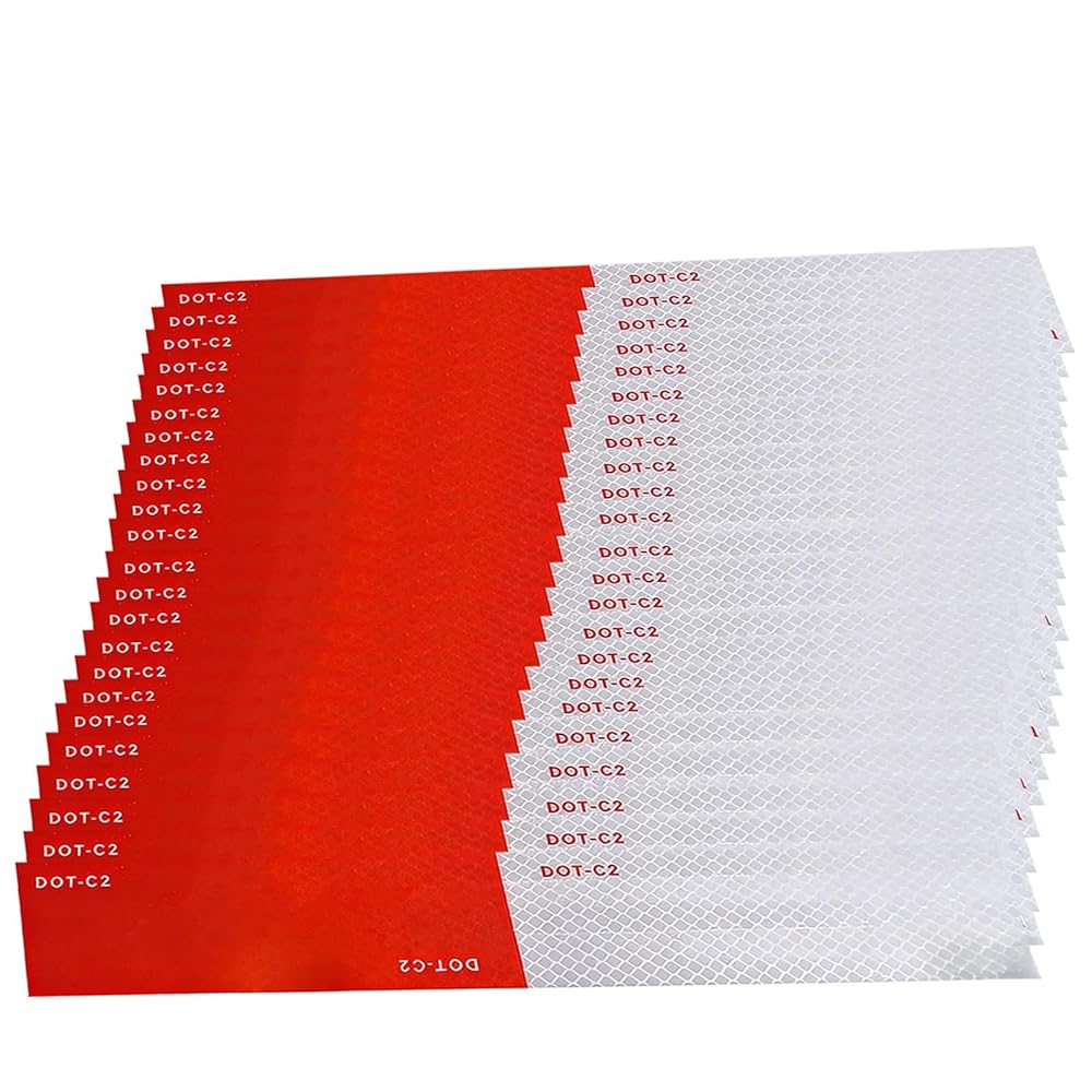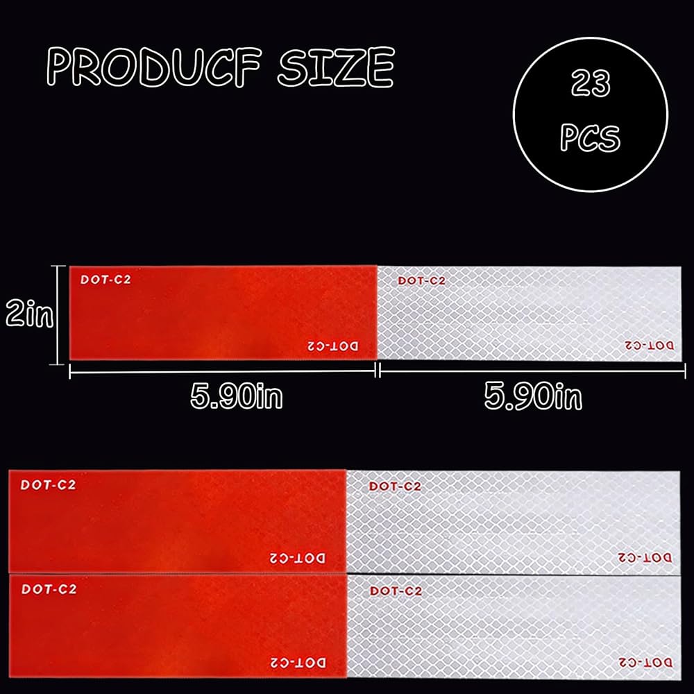 2" x 12" x 23 Pack DOT-C2 Reflective tape, alternating white every 6 inches between red and red, meets federal requirements for trucks. Perfect size and sufficient quantity to meet your different needs, designed for trucks/trailers/cars/bikes