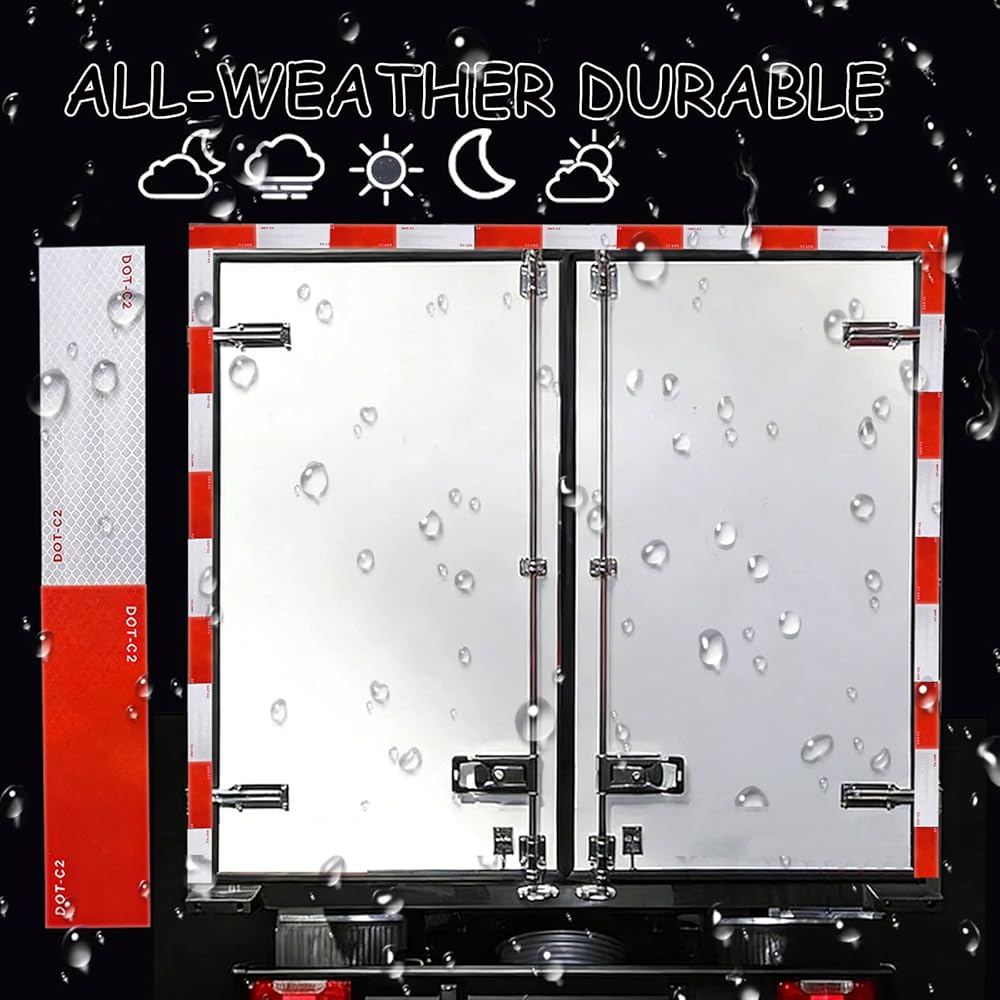 DOT-C2 APPROVED:Each piece of our reflective tape marked DOT-C2 is manufactured in strict compliance with DOT-C2 standards. This DOT-C2 tape dot ensures that your safety message is visible for a long time, outdoor waterproof function also equipped.