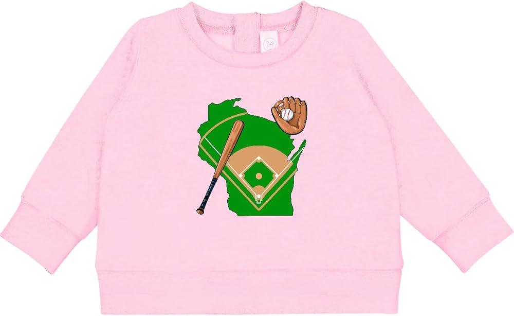 - Wisconsin Baseball with Bat and Glove Baby Sweatshirt.