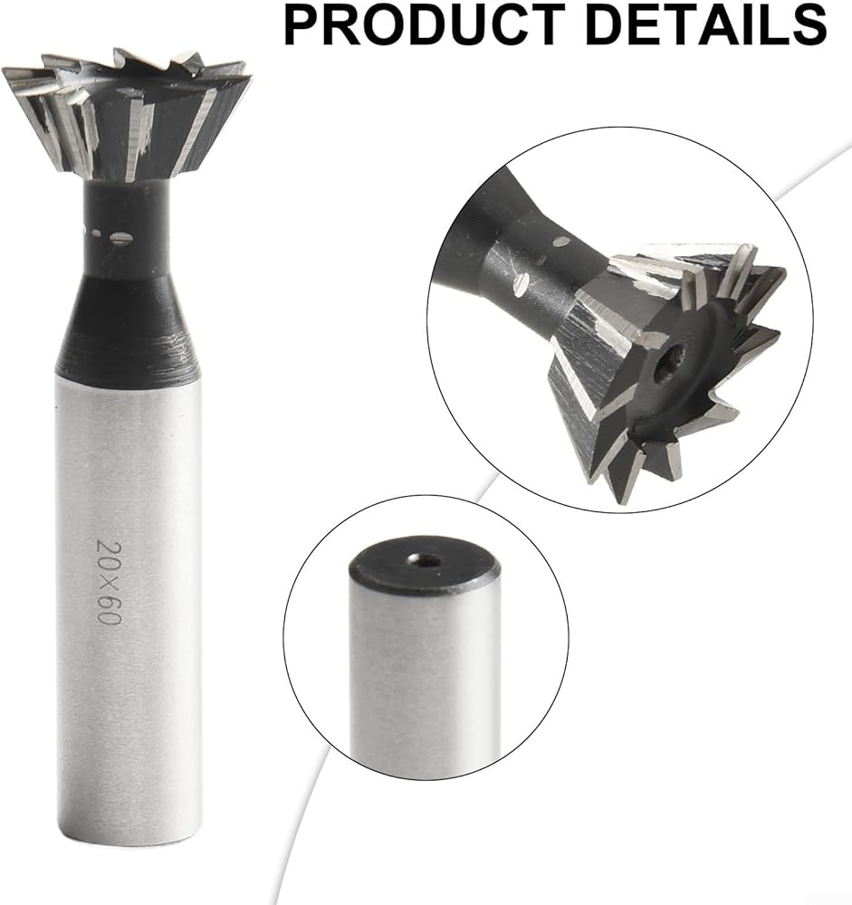 Dovetail milling cutter, 60-degree angle 6-flute design, blade diameter 20mm, standard size, accurate cutting.