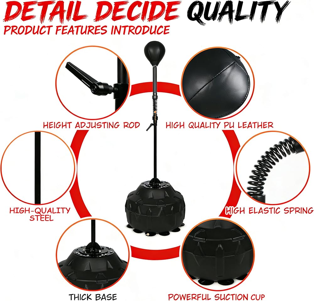 تدريب متعدد الأهداف بزاوية 360 درجة: يتميز هذا المدرب بقضيب منعكس سلس الدوران وحقيبة لكمة عالية الارتداد، ويتيح مجموعات ديناميكية وانزلاقات دفاعية وتدريبات السرعة - مما يحول كل جلسة إلى تمرين تفاعلي لكامل الجسم يبني خفة الحركة والقوة والدقة.