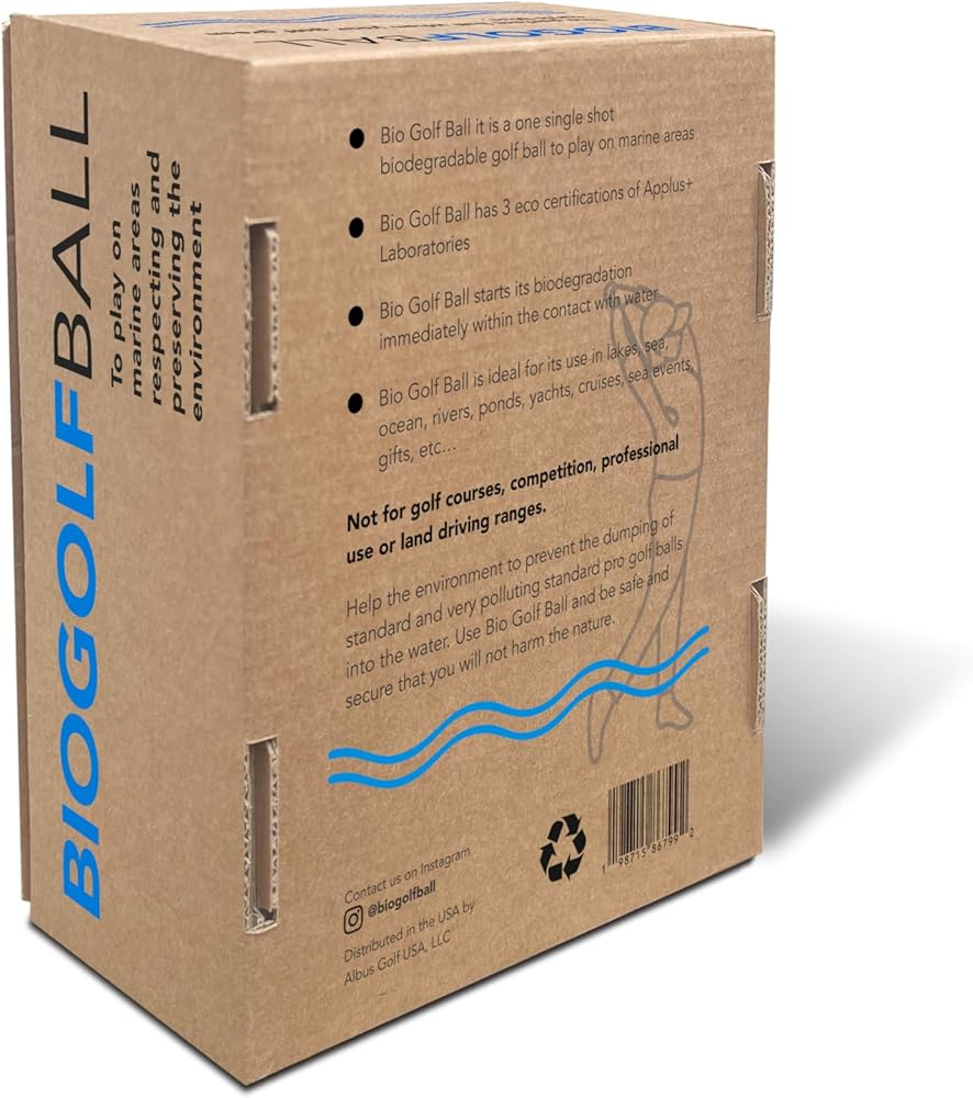 Bio Golf Ball it is a one single shot biodegradable golf ball to play on marine areas. Bio Golf Ball has 3 ecocertifications of Applus+ Laboratories. Bio Golf Ball starts its biodegradation immediatelly within the contact with water. Bio Golf Ball is ideal for its use in lakes, sea, ocean, rivers, ponds, yachts, cruises, sea events, gifts, etc… Not for golf courses, competition, profesional use or land driving ranges. Help the environment to prevent the dumping of standard and very polluting pro golf balls into the water. Use Bio Golf Ball and be safe and secure that you will not harm the nature