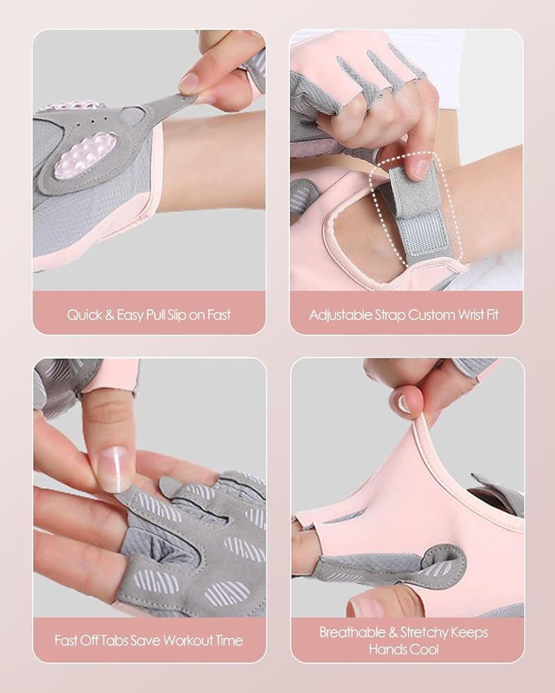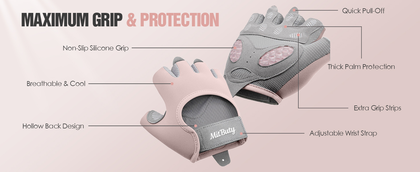 ارتداء بدون جهد وملاءمة آمنة - تتيح لك عروات السحب والخلع السريع ارتداء قفازات الصالة الرياضية وخلعها بسرعة وسهولة، بينما يضمن حزام المعصم القابل للتعديل ملاءمة مريحة وثابتة.