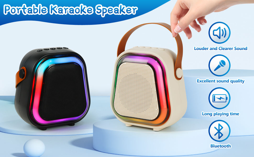 - تصميم محمول: نظام مكبر صوت كاريوكي صغير وخفيف الوزن يمكن نقله بسهولة واستخدامه في أي مكان وفي أي وقت