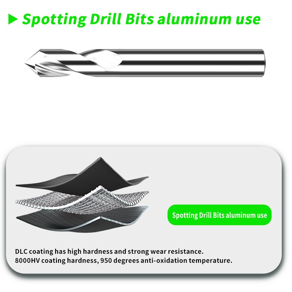 Carbide Spotting Drill Bits 90 Degrees Rust-proof Coating for Aluminum.