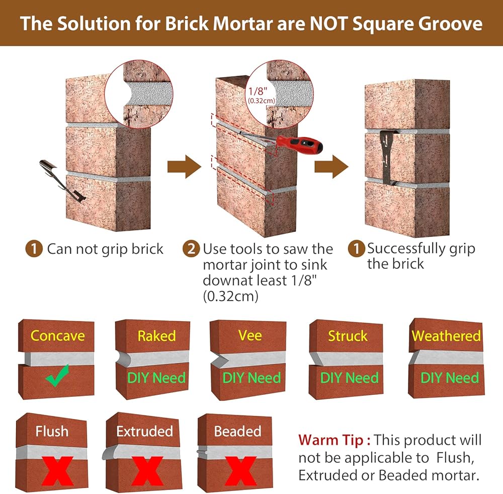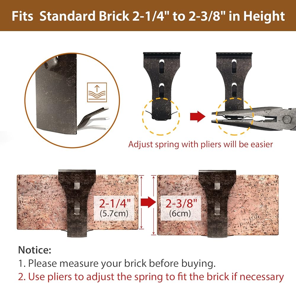 • [الحجم القياسي] مشبك حائط من الطوب يناسب الطوب من 2-1/4 بوصة ارتفاع إلى 2-3/8 بوصة ارتفاع (5.7 سم إلى 6 سم). إنه الحل الأمثل لخلق مظهر جداري أنيق ولكن بسيط ومثالي لتعليق صندوق البريد، والإطارات، والحرف اليدوية، والنباتات في أصيص، والضوء، والإكليل، وأي نوع من ديكورات الجدران التي تحتاجها