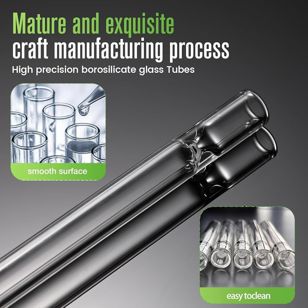 Exceptional Quality and Durability; Our 6PCS glass tubes are crafted from premium borosilicate glass with 2mm wall thickness, designed to withstand high temperatures and prevent breakage. Featuring strong resistance to thermal shock and chemical corrosion, their durability and transparency make these glass test tubes an ideal choice for laboratory experiments and industrial applications.