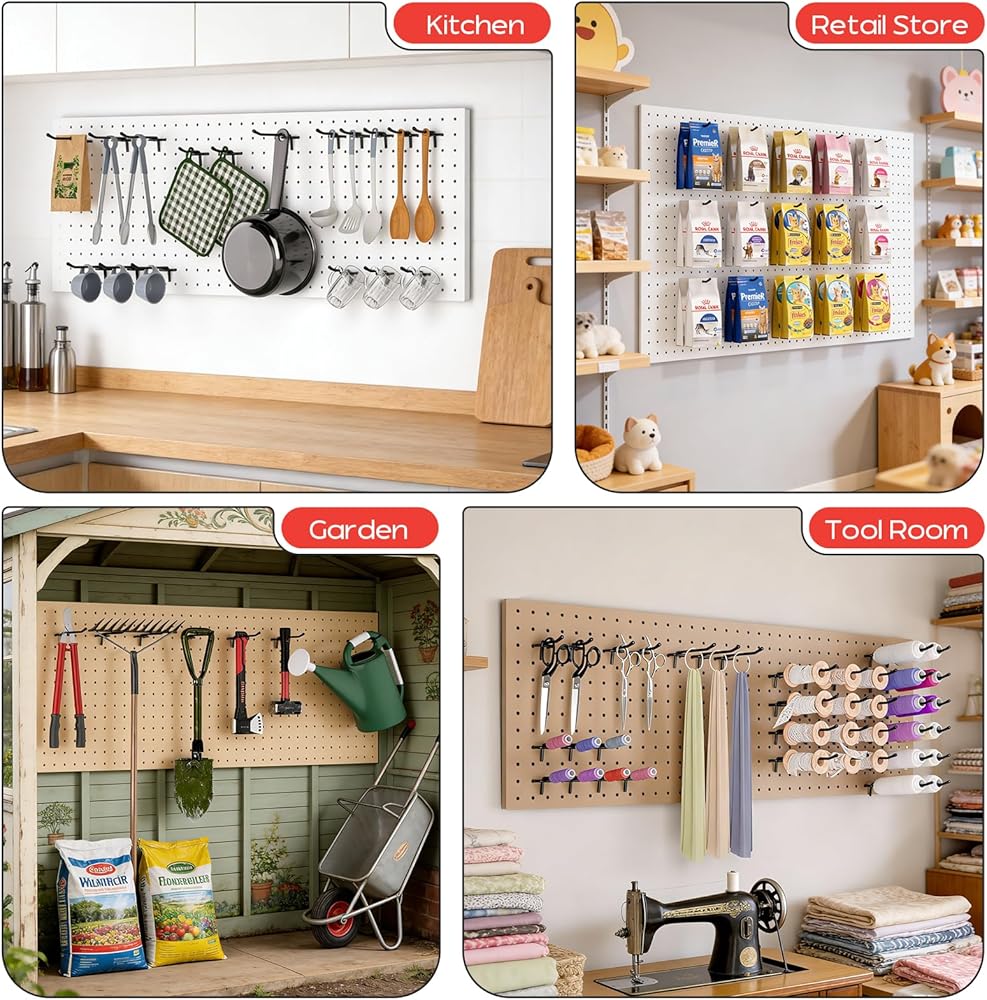 Effcient Organization: Maximize wall-mounted storage with this pegboard hook assortment. Hanging everything from hand tools, kitchen accessories and decorations. These peg board organizer help declutter workspace while keeping different tools well organized.