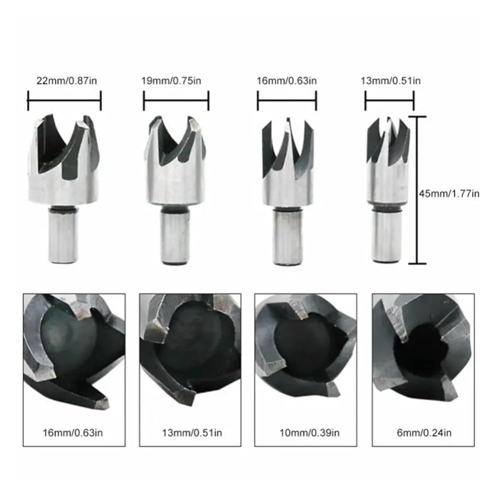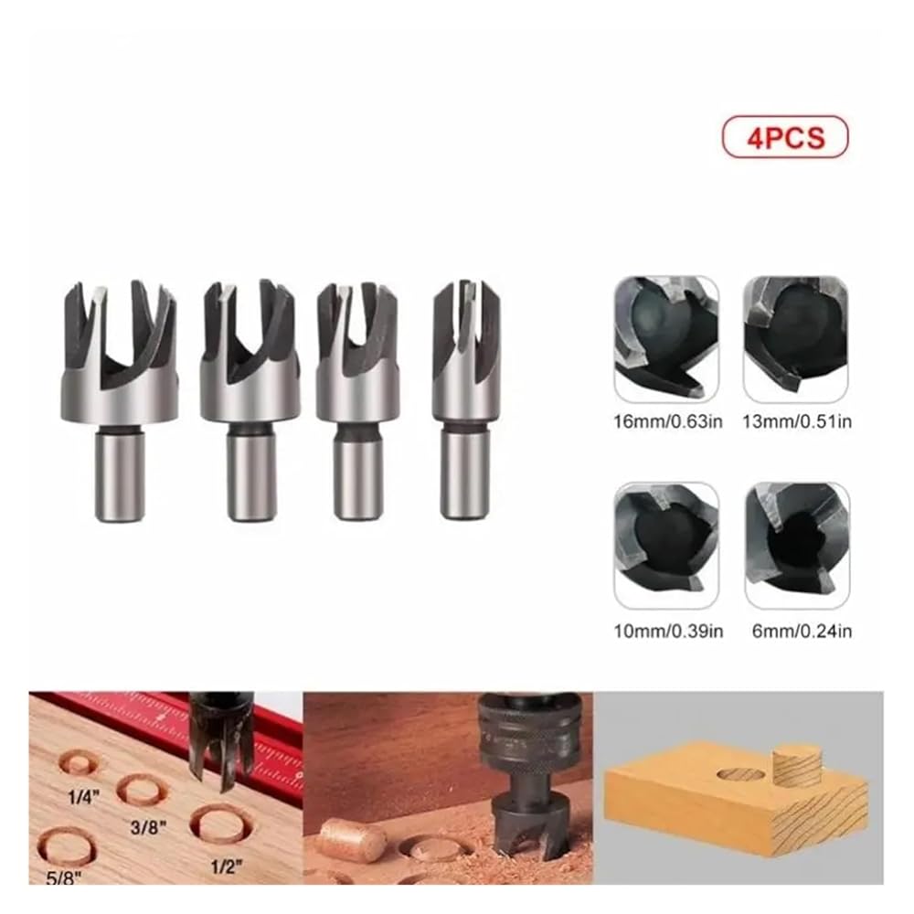 This set includes 4 pieces of drill bits with sizes ranging from 6mm to 16mm, designed for hole-making tasks in woodworking applications.