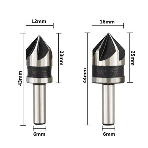 • This set includes 2 pieces of chamfering cutters, available in 12mm and 16mm sizes, designed for countersinking, chamfering and hole-cutting tasks on wood and metal materials.