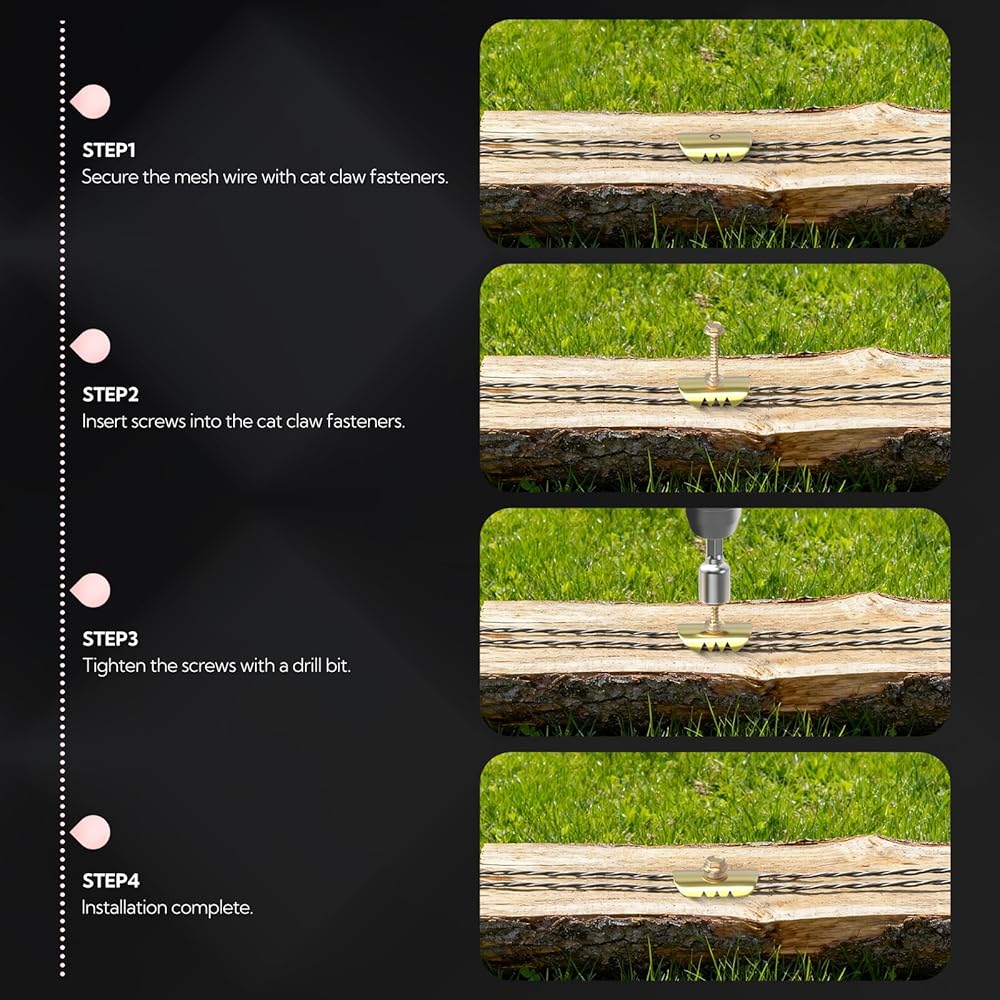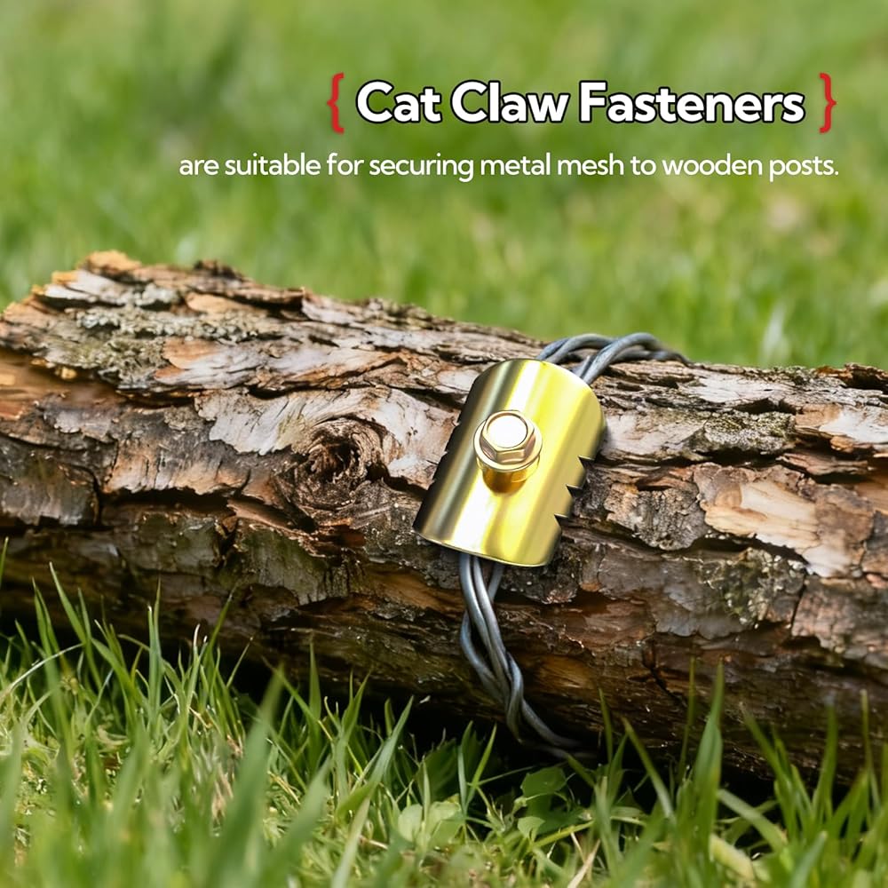 • Function: Cat Claw fasteners secure wire mesh, metal netting, and similar materials to wooden posts