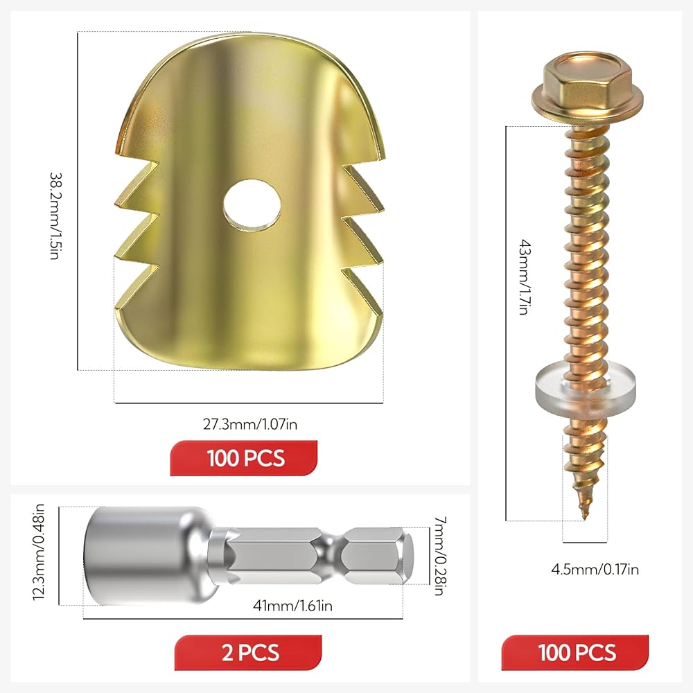 • Material: Screws are made of heavy-duty galvanized metal with rust and corrosion resistance