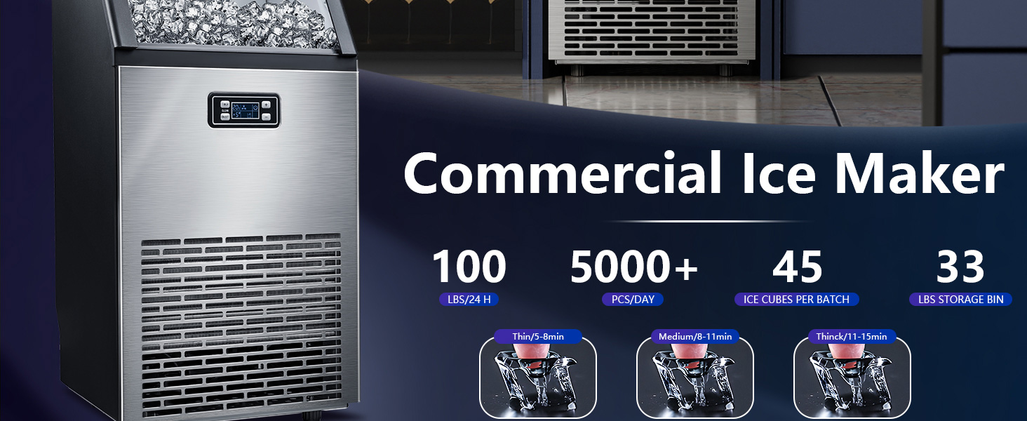 FAST MAKER- يتمتع صانع الثلج في أنتاركتيكا ستار بقدرة قوية وسريعة على صنع الثلج. يُصنع دفعات من مكعبات الثلج في حوالي 100 رطل من الثلج خلال 24 ساعة ويصنع ثلجًا صافيًا بسرعة في دورة واحدة خلال بضع دقائق. خاصة في فصل الصيف الحار، يمكنك الاستمتاع بالمشروبات والبيرة مع مكعبات الثلج. صندوق تخزين بسعة 33 رطلاً. يشتمل على مغرفة وخرطوم توصيل