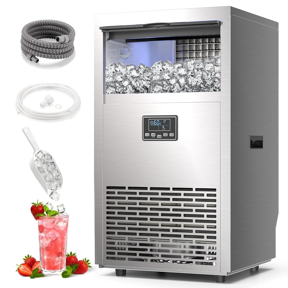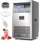 مع الملحقات الأساسية - يأتي صانع الثلج هذا مع مجموعة كاملة من الملحقات بما في ذلك مغرفة الثلج وخرطوم إمداد المياه وموصل إمداد المياه وخرطوم تصريف المياه. قبل الاستخدام لأول مرة، قم بتنظيف صانعة الثلج واحتفظ بها في وضع مستقيم لمدة 24 ساعة. قم بتوصيل الجهاز فقط بمصدر مياه الشرب