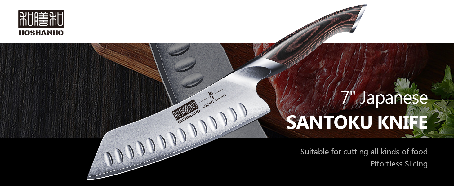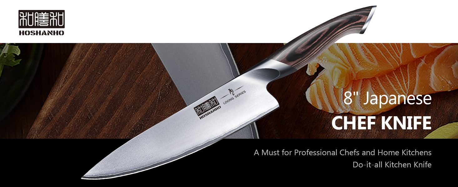【Multifunction】HOSHANHO 3 Piece professional kitchen knife set comes with 8" chef's knife, 7" santoku knife and 6" utility knife; Whether it's kitchen tasks such as chopping, slicing, dicing, mincing meat, fruits and vegetables, or professional use, this knife set is up to the task