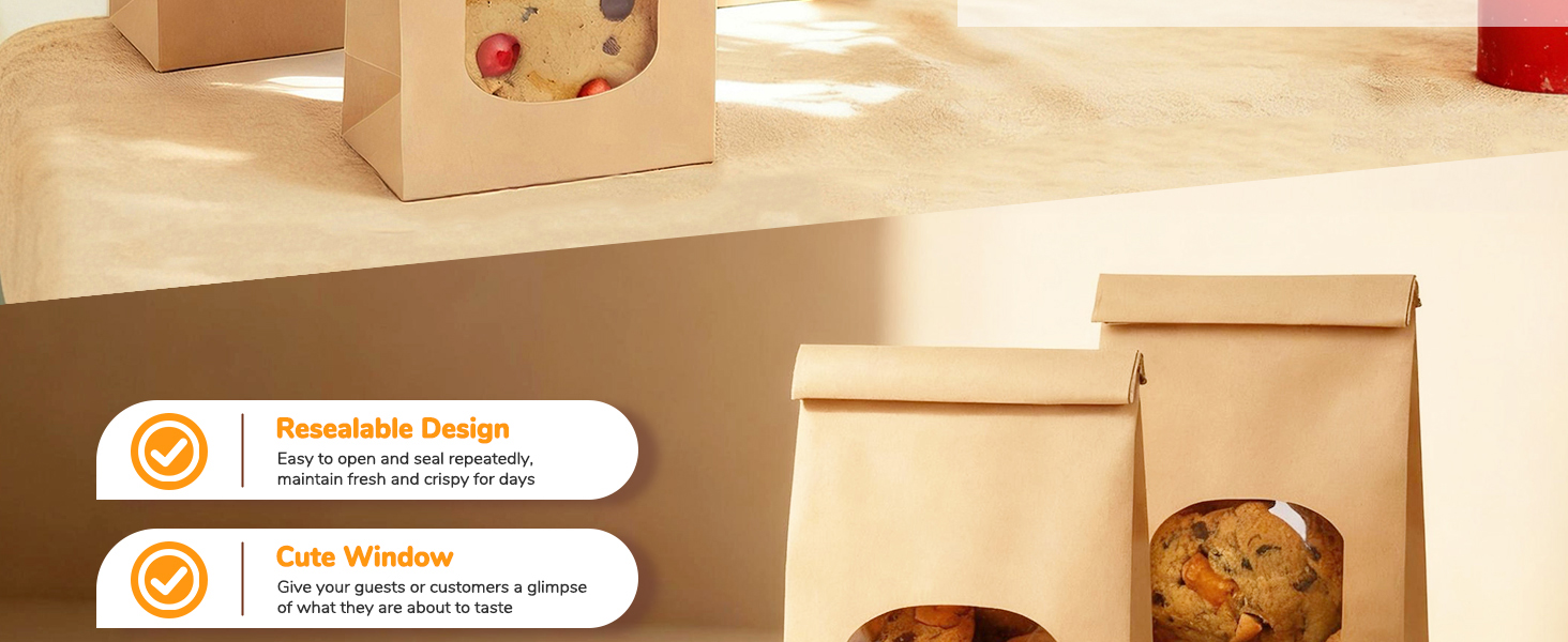حجم الحصة المثالي: قياس 3.9 بوصة طول × 2.3 بوصة عرض × 8 بوصة ارتفاع، تعتبر أكياس المخبوزات لدينا رائعة للبسكويت والفشار والجرانولا والحلوى ومزيج الدرب والكعك وحتى مكافآت الحيوانات الأليفة.