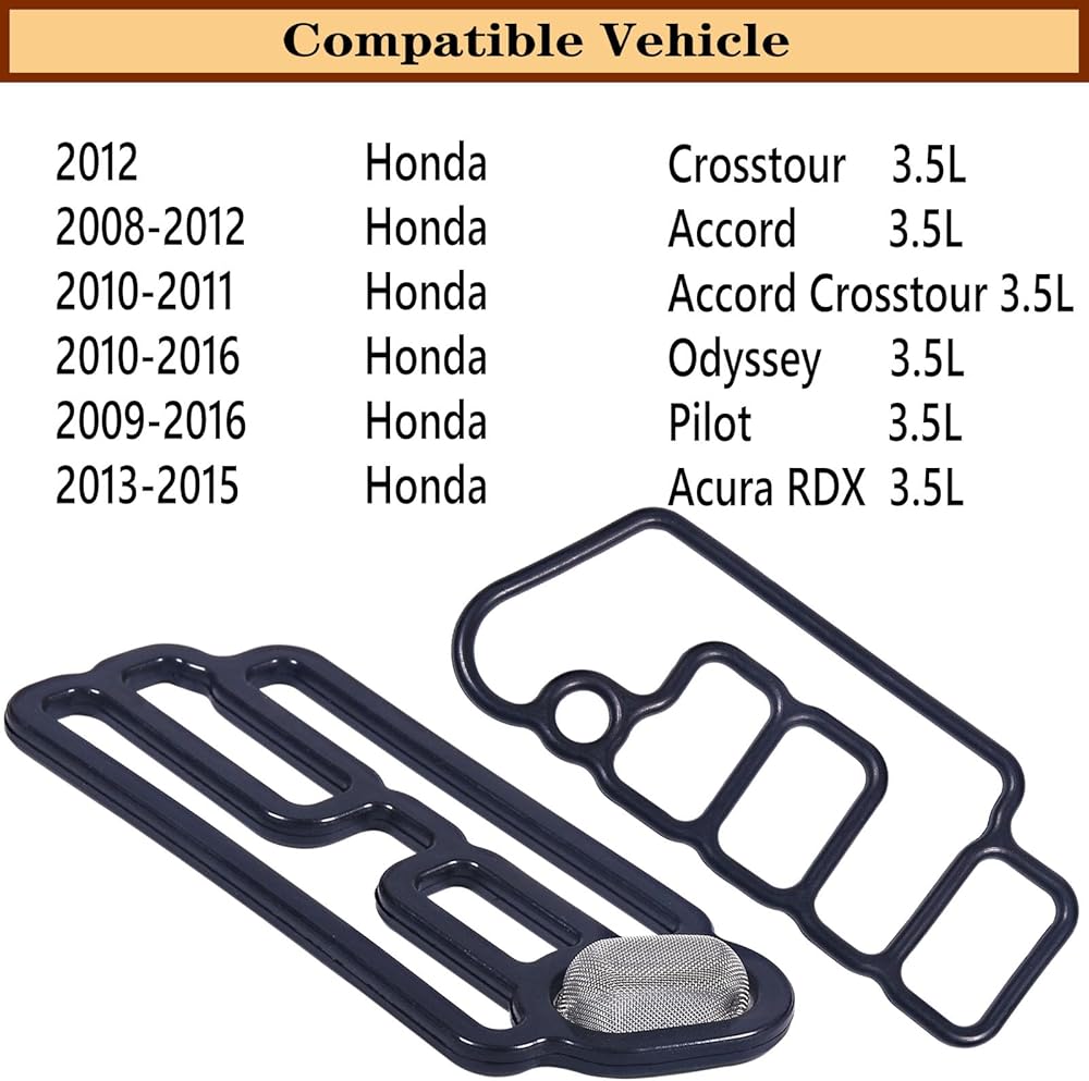15815-R70-A01 15845-R70-A01 Cylinder Head VVT VTEC Solenoid Spool Valve Gasket Compatible With Acura RDX Accord Odyssey Pilot Crosstour 2008 2009 2010 2011 2012 2013 2014-2016 2PC;918-056,3.5L.