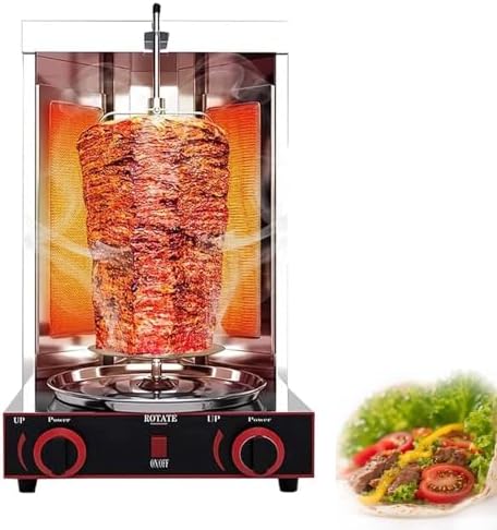 Elevate your culinary skills with our Professional Vertical Rotisserie Shawarma Machine, designed for effortless and delicious roasting. Key Features: - **Generous Capacity & Efficient Heating**: Roast up to 13 lbs of meat, perfect for gatherings of 6-7 people. The dual adjustable infrared burners quickly heat from 122°F to 572°F, ensuring your meat is cooked to perfection while keeping it healthy and flavorful. - **360° Smokeless Rotation**: The automatic rotating skewer guarantees even cooking on all sides. A separate drip tray captures excess fat, preventing oil splashes and smoky flare-ups, giving you a cleaner grilling experience. - **Flexible Dual Fuel Options**: Choose between gas and electric models, allowing you to suit your cooking environment. With high-efficiency burners, you can enjoy faster cooking times without compromising on taste. Specifications: - **Model Types**: Available in Gas & Electric versions - **Heating Power**: 3000W (Electric) | 2800Pa Pressure (Gas) - **Voltage**: 110V/220V (Electric) | LPG Compatible (Gas) - **Temperature Range**: 122°F–572°F (Adjustable) - **Capacity**: Up to 13 lbs - **Material**: Durable Stainless Steel (Body & Frames) - **Dimensions**: 300×300×490mm (Gas) / 295×265×485mm (Electric) - **Weight**: 8kg (Gas) / 6kg (Electric) Package Includes: - 1 x Vertical Rotisserie Oven Grill - 1 x Pressure Reducing Valve (Gas Model) or Power Cord (Electric Model) Usage Tips: For optimal results, place the machine on a stable, heat-resistant surface. Ensure the drip tray is properly positioned before use and allow the unit to cool completely before cleaning. Regularly check gas connections for safety with the gas model. Transform your cooking experience and impress your guests with perfectly roasted meats. If you have any questions, feel free to reach out to us; we're here to assist you within 24 hours.