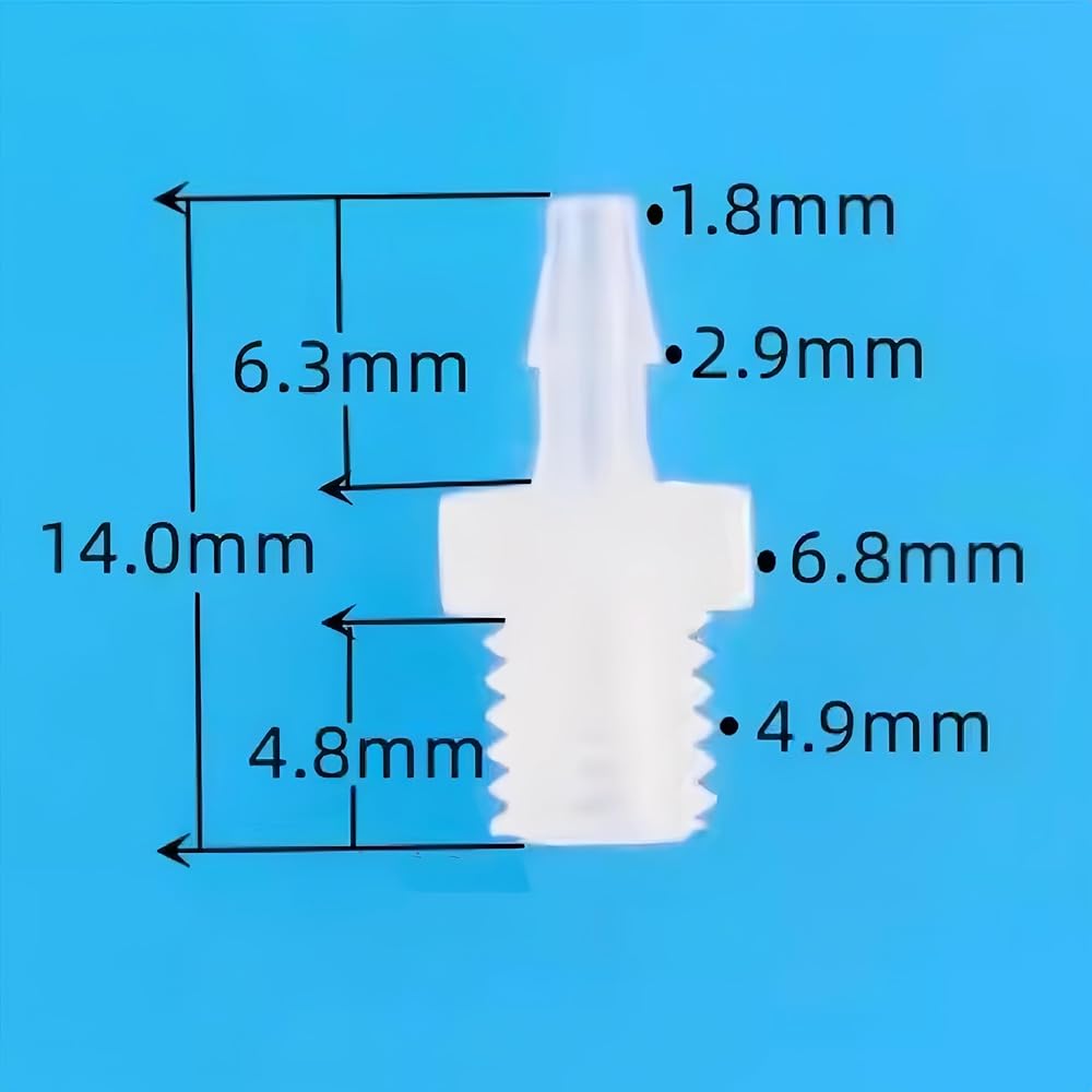 • Size Specifications: 25Pcs 1/16 Inch Male Threaded to Barbed Hose Fitting, Connected with 1.0-1.6mm Hose ID, M5 Male Threaded