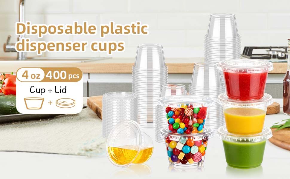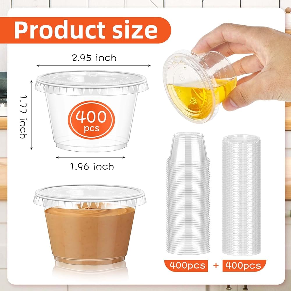 400 قطعة من أكواب سوفليه للاستعمال مرة واحدة من تشورليز، 400 قطعة، أكواب جيلو شوت مع أغطية، كوب صلصة غمس بهار بلاستيكي للاستعمال مرة واحدة، حاويات صغيرة لتتبيل السلطة