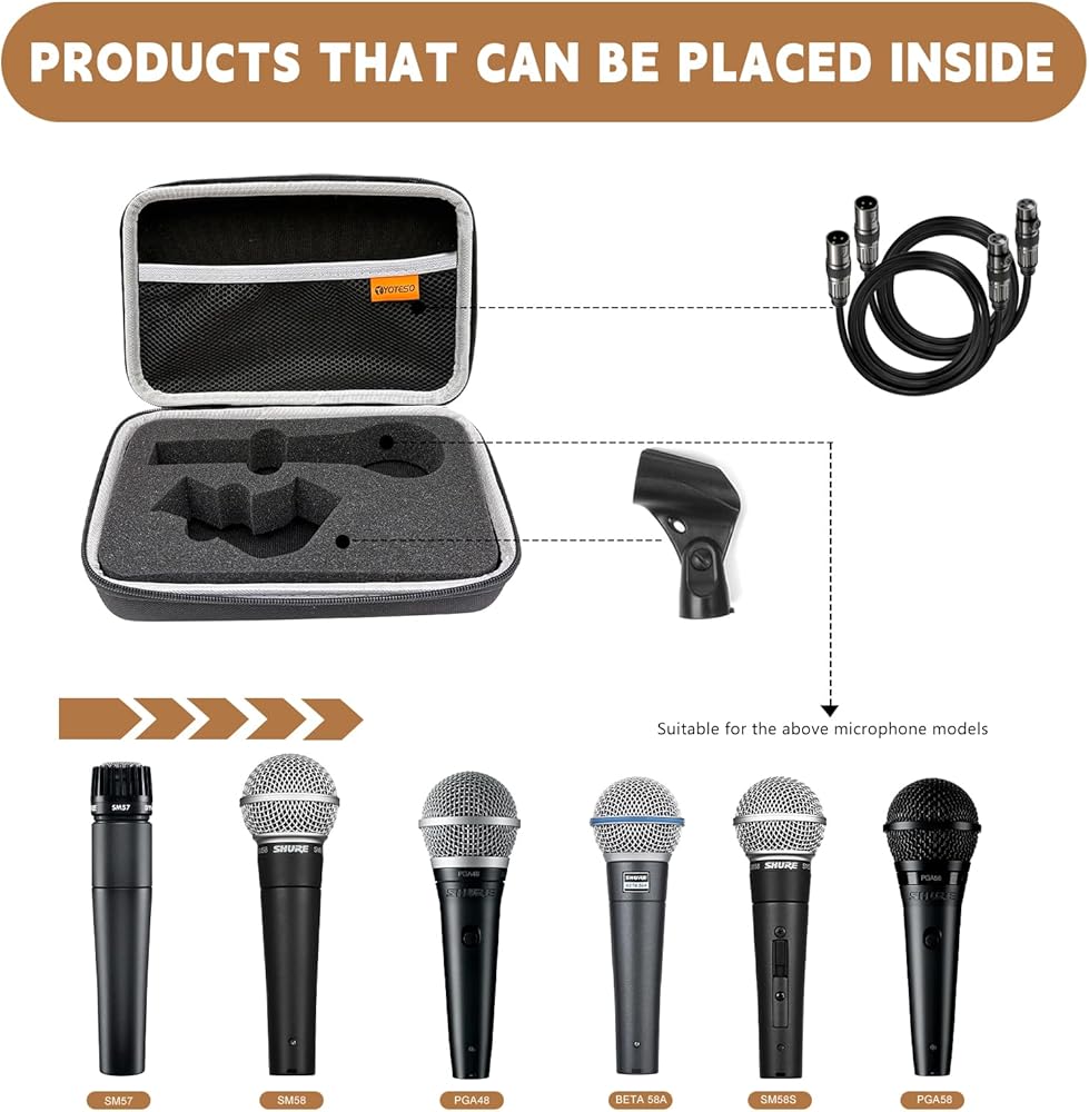ملاءمة مخصصة لميكروفونات Shure: تم تصميم حافظة ميكروفون YOTESO هذه بدقة لموديلات Shure SM58 وSM57 وPGA48 وSM58S وBETA 58A، مما يوفر تصميمًا داخليًا مخصصًا يحمل الميكروفون الخاص بك بشكل مريح ومحول حامل A25D الخاص به لتوفير الحماية المثالية (الجراب فقط، الميكروفون غير متضمن).