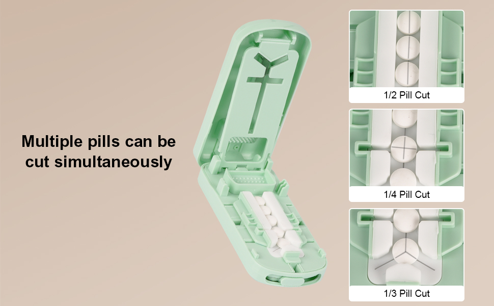 【قطاعة حبوب متعددة الوظائف】 يمكن لقطاعة حبوب منع الحمل هذه أن تقطع وتطحن الأقراص الكبيرة والصغيرة والصغيرة بأشكال مختلفة في 1/2 و1/3 و1/4. يمكنها أيضًا قطع أقراص متعددة في نفس الوقت. وفي الوقت نفسه، تم تصميم الجزء الخلفي بمساحة لتخزين الأقراص، مما يجعل من السهل تخزينها.