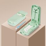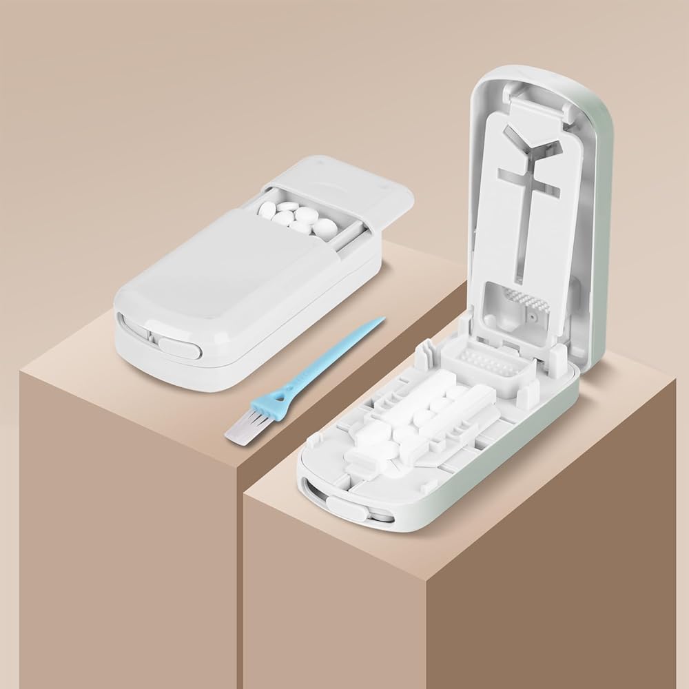 【 تصميم جيد】عند فتح أداة تقطيع حبوب الدواء، يوجد حاجز على الجانب المعاكس منها، مما يحمي الأصابع.
