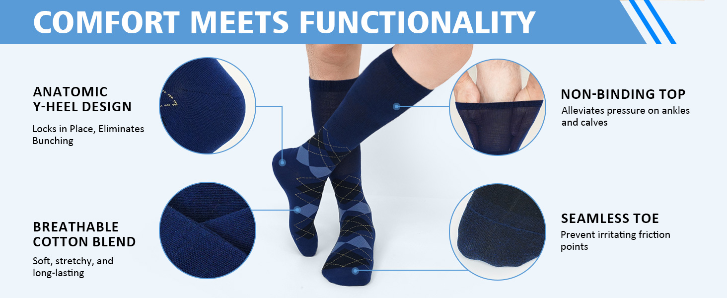جوارب أنيقة لمرضى السكري: هل سئمت من نفس الجوارب القديمة المملة لمرضى السكري؟ تصميماتنا الفريدة من نوعها من الجوارب متعددة الألوان المخططة والهندسية والأرجايل تسمح لك بالبقاء بصحة جيدة ولكن دون أن تفقد أسلوبك!