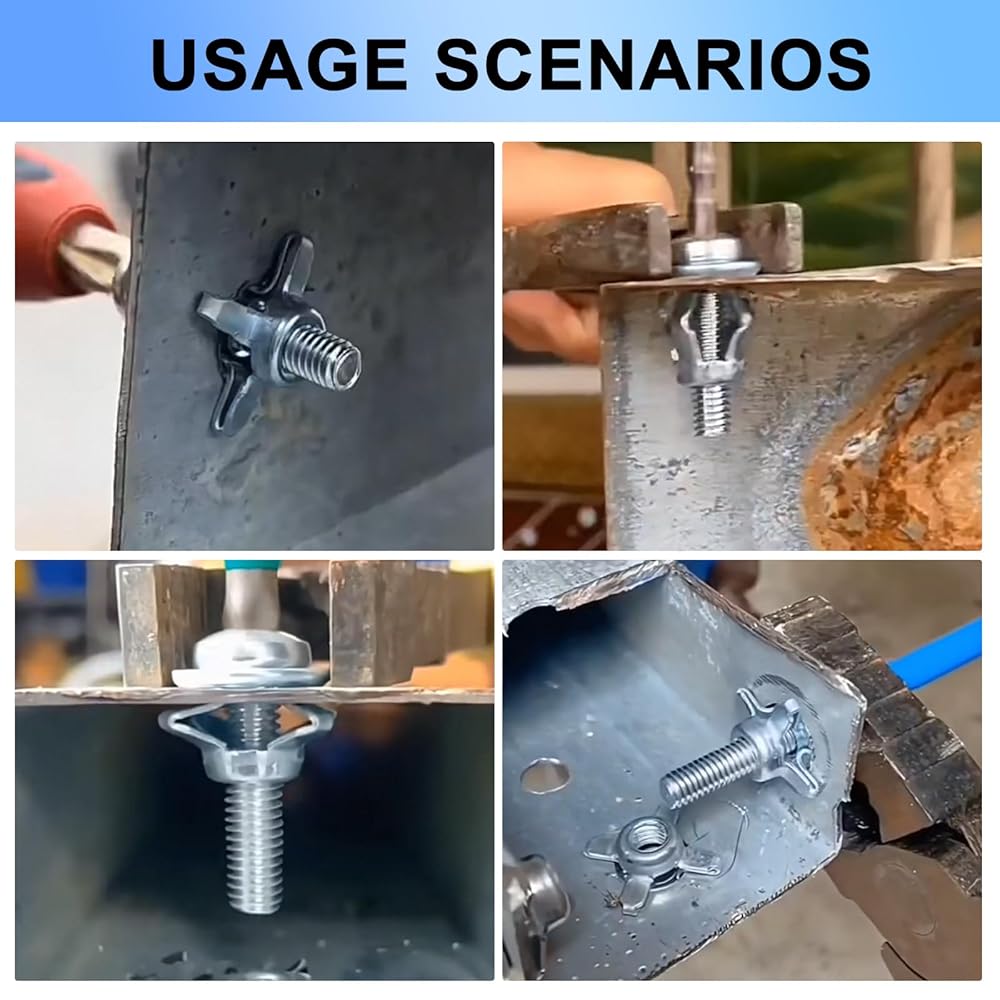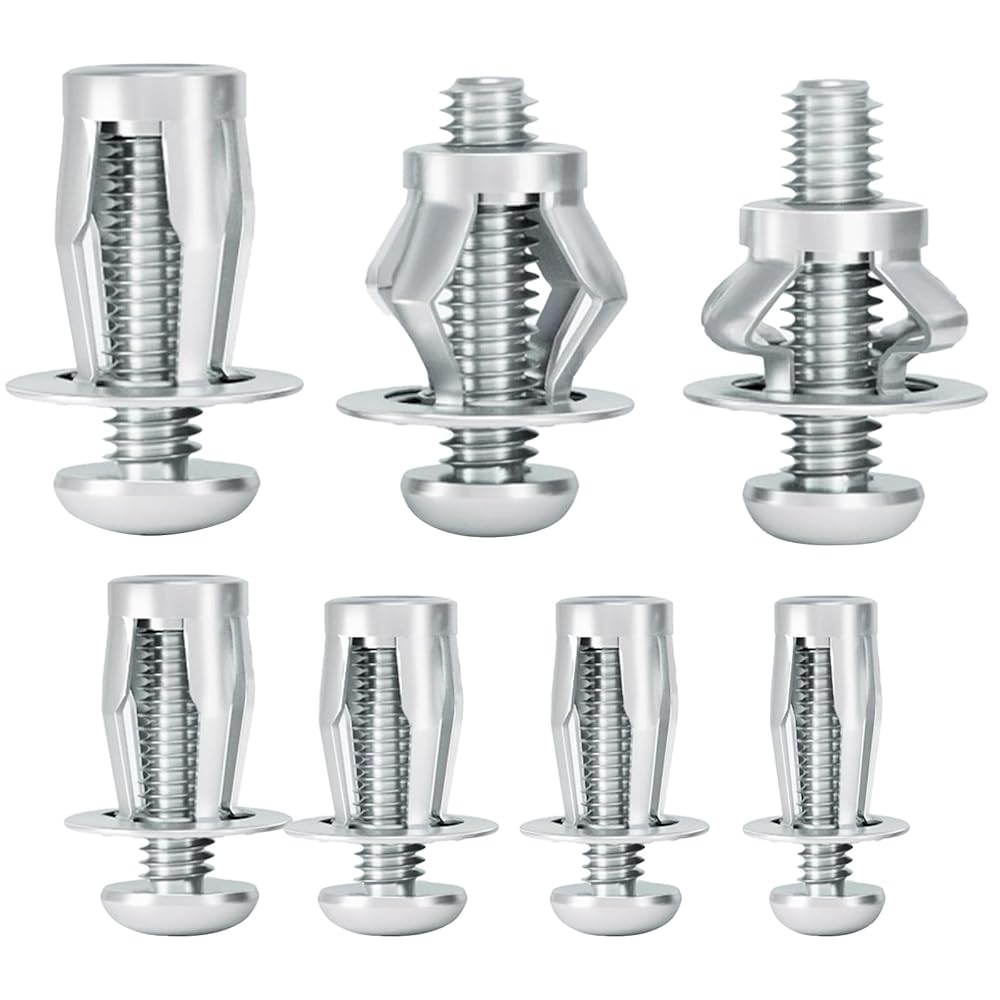 Easy Installation: All you need for installation are a wrenched or plier, and a screwdriver. First, hold the rivet nut so it does not spin after you insert it into the hole. Then, insert the anchor into the hole. Finally, use a screwdriver to screw in the bolt, and the petals will expand to hold the anchor firmly in place.As you tighten the screw/bolt, the nut will crimp and hold in place. Don't over-tighten or you may strip the thread.