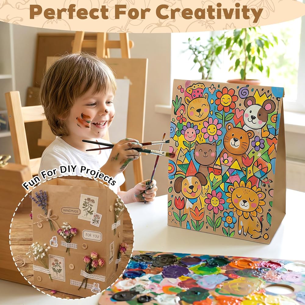 • مثالية للمشروعات التي تصنعها بنفسك: حقائب البقالة الورقية لدينا غير مزخرفة مما يجعلها خيارًا رائعًا للمشروعات اليدوية والمشروعات اليدوية. السطح مثالي للرسم والتزيين. استخدم الطوابع أو الملصقات أو علامات التحديد أو المادة اللامعة لجعلها فريدة لك