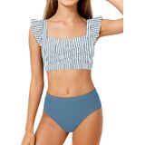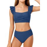 👒【Stylish Design】This stylish two-piece swimsuit features a square neckline and crisscross detail at the chest, along with adjustable straps and ruffled trim, creating a fashionable and slimming look. The high-waisted bottoms offer excellent support, and the built-in removable bra pads provide a comfortable and supportive option, balancing style and comfort to keep your girl happy all day long.