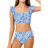 🎁【Great Value Set】Our girls' bikini set comes in a variety of colors, including solid colors and floral printed , to suit different preferences and needs. You will receive 1 x ruffled top and 1 x swim bottom. It makes the perfect gift for your daughter, granddaughter, or niece. The vibrant colors are easy to pair with beach sandals, sunglasses, hats, and other accessories. Your girl will absolutely love it!