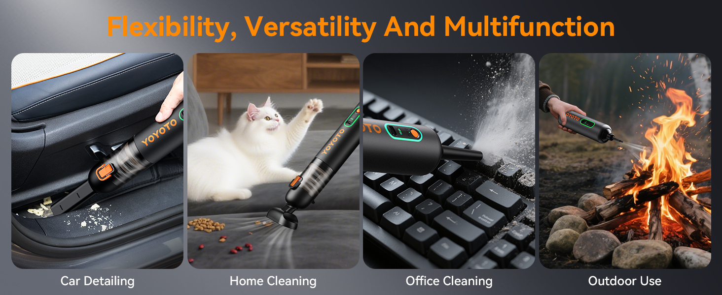 [مكنسة سيارة متعددة الوظائف 4 في 1] نحن لسنا مجرد مكنسة كهربائية محمولة ولكن أيضًا أداة متعددة 4 في 1. من خلال الدمج بسلاسة بين استخراج الهواء والنفخ وشفط الغبار والنفخ في حل واحد مدمج، تتغلب هذه المكنسة الكهربائية المحمولة اللاسلكية بسهولة على السيارة والمنزل ومكان العمل والخارج، مما يعيد تعريف التنظيف ويوفر وظائف متعددة وراحة رائعة - كل ذلك في أداة واحدة.