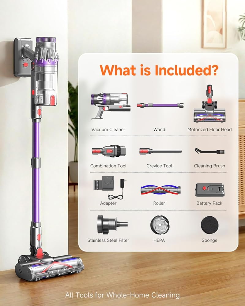 【شفط قوي ومتعدد الاستخدامات】تم تصميم هذه المكنسة الكهربائية اللاسلكية بمحرك بدون فرش، وتوفر شفطًا قويًا للغاية، مما يجعل من السهل التقاط الغبار والحطام والجسيمات الكبيرة وشعر الحيوانات الأليفة من الأرضيات الصلبة والسجاد والبلاط وما إلى ذلك. بفضل الملحقات متعددة الوظائف، تتحول بسرعة إلى مكنسة كهربائية محمولة لتنظيف الستائر والأرائك والأسرة والسلالم وما إلى ذلك.
