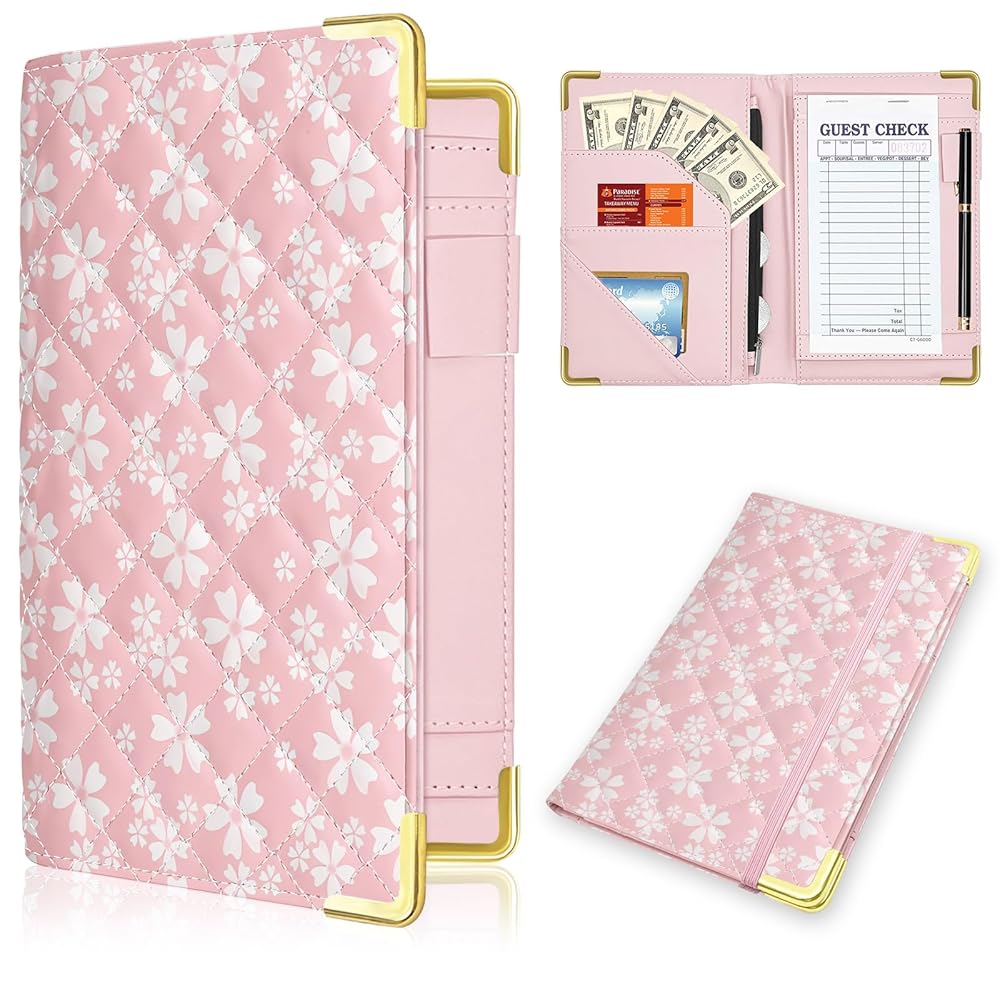 • Portable Size: The server book is designed at a convenient size of 8.2" x 4.3" x 0.6", making it perfect for holding a regular guest checkbook and fitting snugly into your apron pocket.the elastic closure keeps your book securely closed and keep things from falling out; the metal corner adds style and durability, standing up to