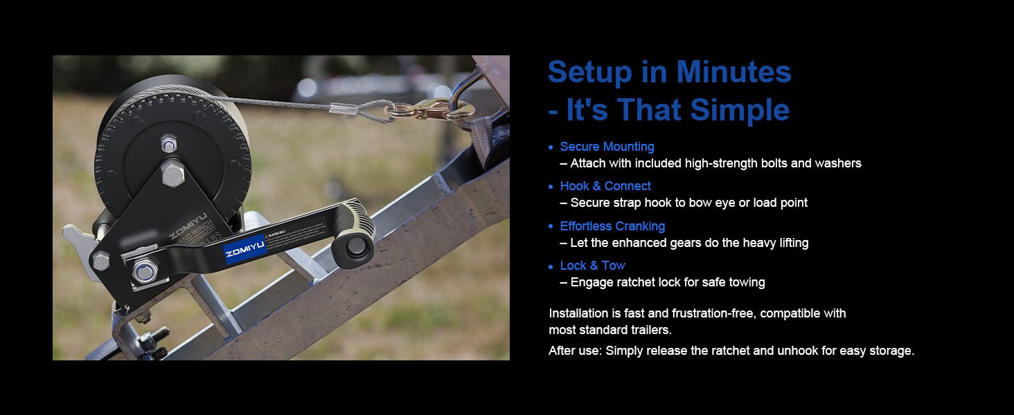 متعددة الاستخدامات وجاهزة لأي مهمة: مثالية لمقطورات القوارب والزلاجات النفاثة ومركبات ATV ومعدات العشب ورفع الغزلان والمزيد. يشتمل على أدوات تثبيت للتركيب السريع. أداة يجب اقتناؤها لكل عشاق الهواء الطلق ومحبي الأعمال اليدوية
