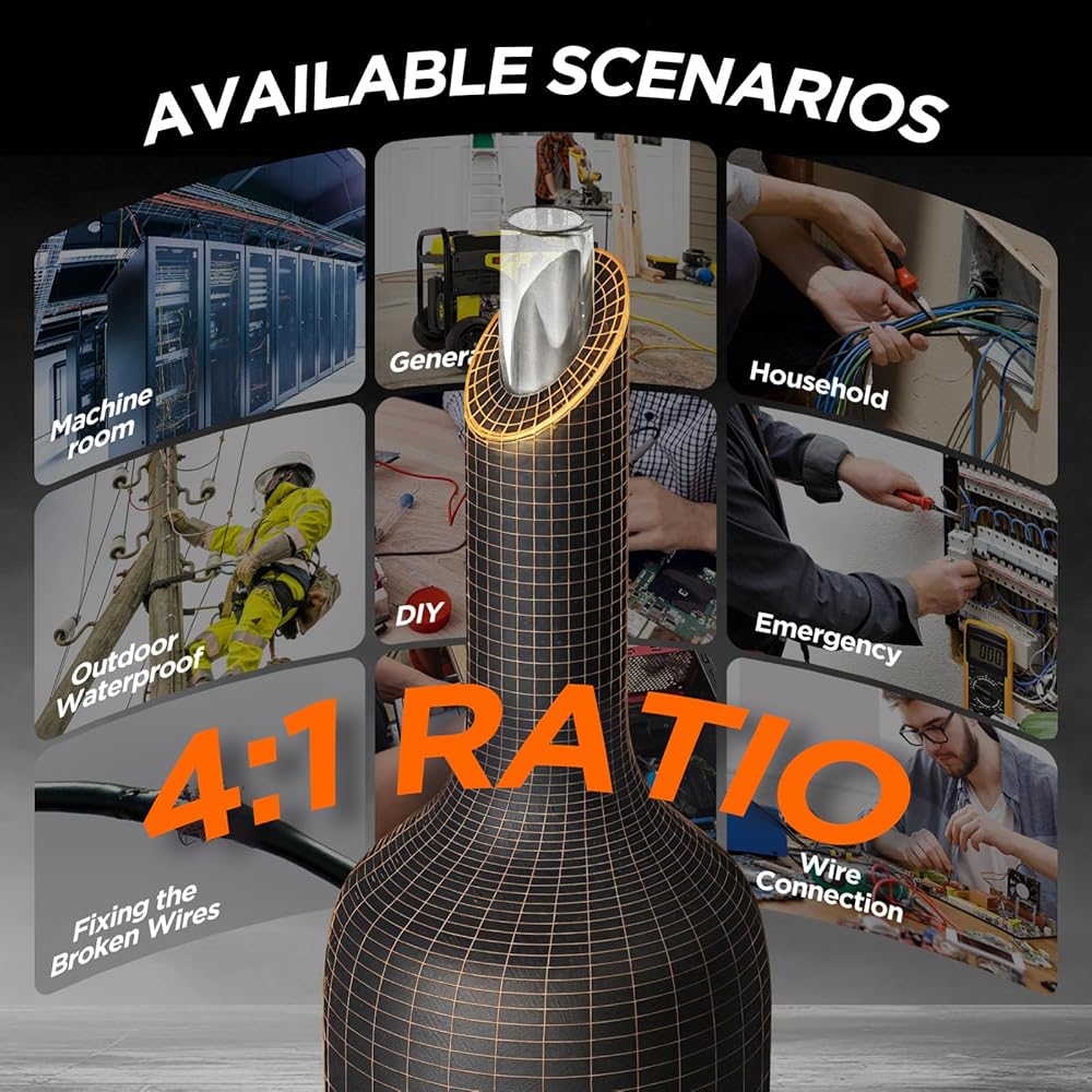 [نطاق تطبيق واسع - بحري، تلقائي، DIY والمزيد] مصمم للمحترفين والهواة على حد سواء. استخدمه لإصلاح السيارات، أو الأسلاك البحرية، أو العزل الكهربائي، أو الإلكترونيات التي تصنعها بنفسك، أو مشاريع تحسين المنزل. مقاومة للرطوبة، والوقود، والزيوت، والمواد الكيميائية - صُنعت لتؤدي الأداء الذي يفشل فيه الآخرون.