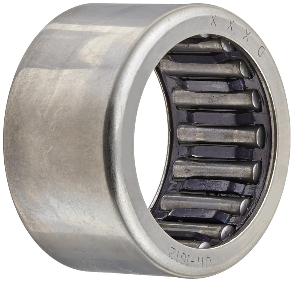 This Koyo caged drawn cup needle roller bearing has a steel cage and is suitable for applications with high dynamic loads. It has a smaller cross-section than a machined needle roller bearing for use in restricted mounting spaces. The steel cage provides guidance and even spacing of the rollers for reduced friction, vibration, and noise when operated at high speeds. The needle rollers are made of through-hardened, high-carbon chromium steel for durability and heat tolerance, and have contoured ends to optimize the distribution of contact stress. This radial needle roller bearing meets American National Standards Institute/American Bearing Manufacturers Association standard ANSI/ABMA 18.2 for quality assurance, and is used in various applications, such as automotive and truck transmissions, agricultural and construction equipment, pumps and compressors, and two-cycle engines, among others.