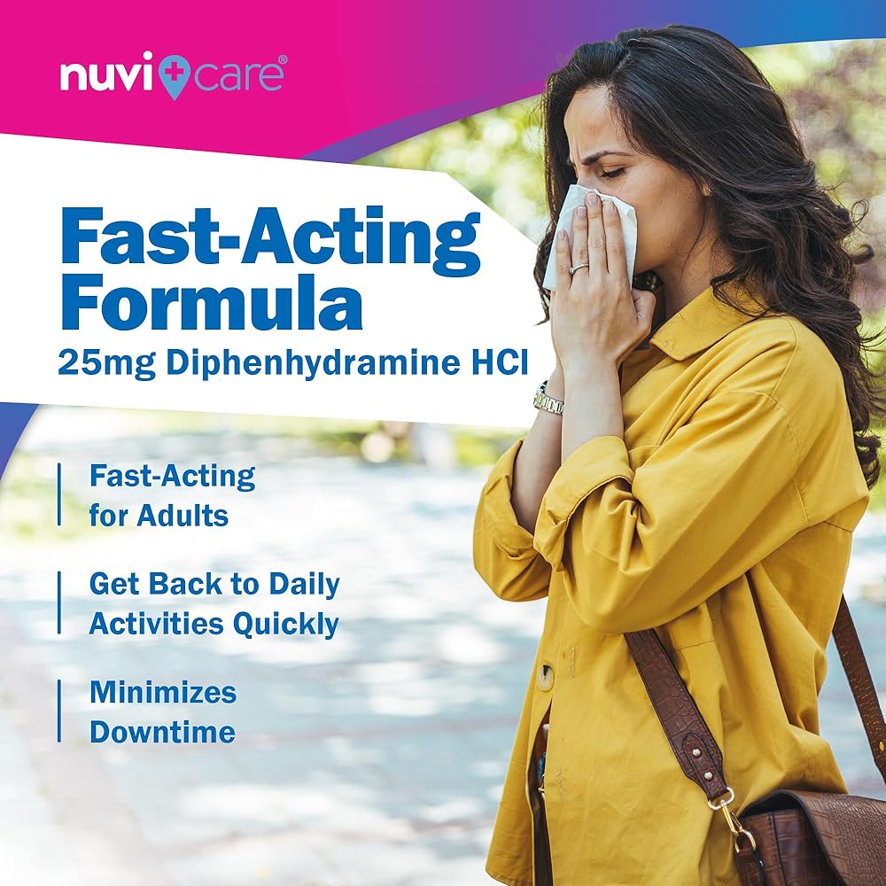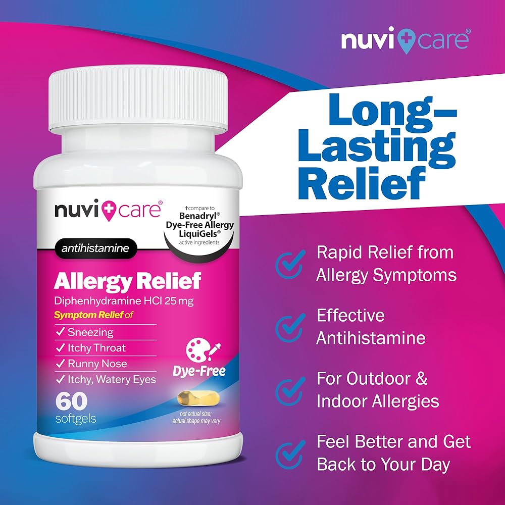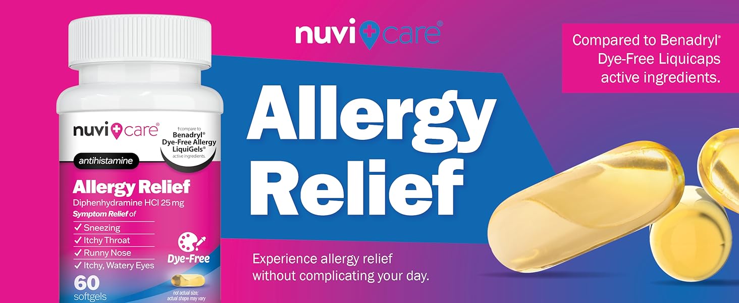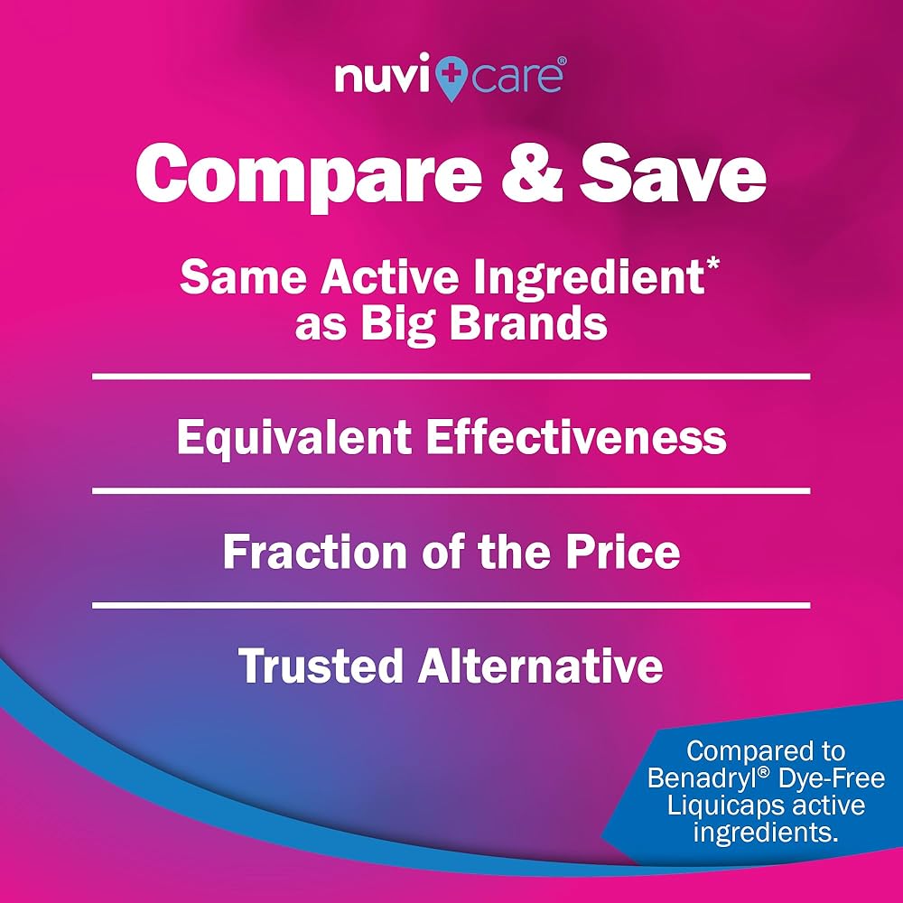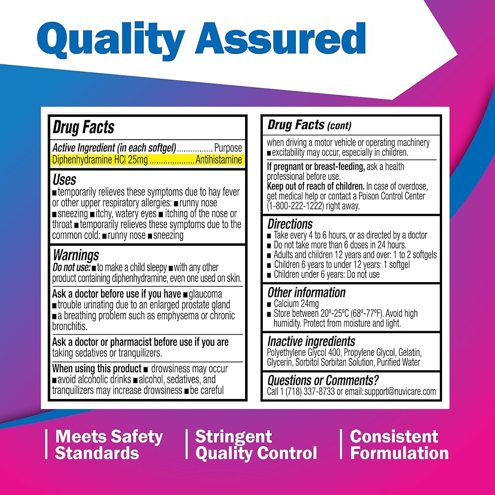 الجودة التي يمكنك الوثوق بها - يتم إنتاج كبسولات هلامية Nuvicare Allergy Relief Diphenhydramine HCl في منشأة تلبي معايير الجودة والسلامة الصارمة. ثق في Nuvicare للحصول على حلول OTC الموثوقة والفعالة ذات القيمة العامة، واحصل فقط على المنتجات عالية الجودة التي تلبي احتياجاتك الصحية.