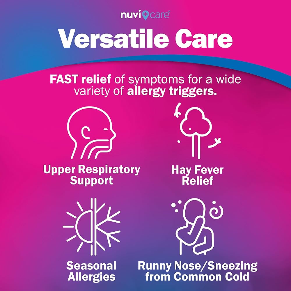 تخفيف الحساسية: قارنه بـ - امنح نفسك راحة سريعة من أعراض الحساسية مع حبوب الحساسية العامة من Nuvicare في شكل كبسولة هلامية خالية من الأصباغ. دواء الحساسية هذا فعال ضد حبوب اللقاح ووبر الحيوانات الأليفة والغبار وغير ذلك الكثير. قارنه بالعنصر النشط الموجود في المواد الهلامية السائلة الخالية من الصبغة.