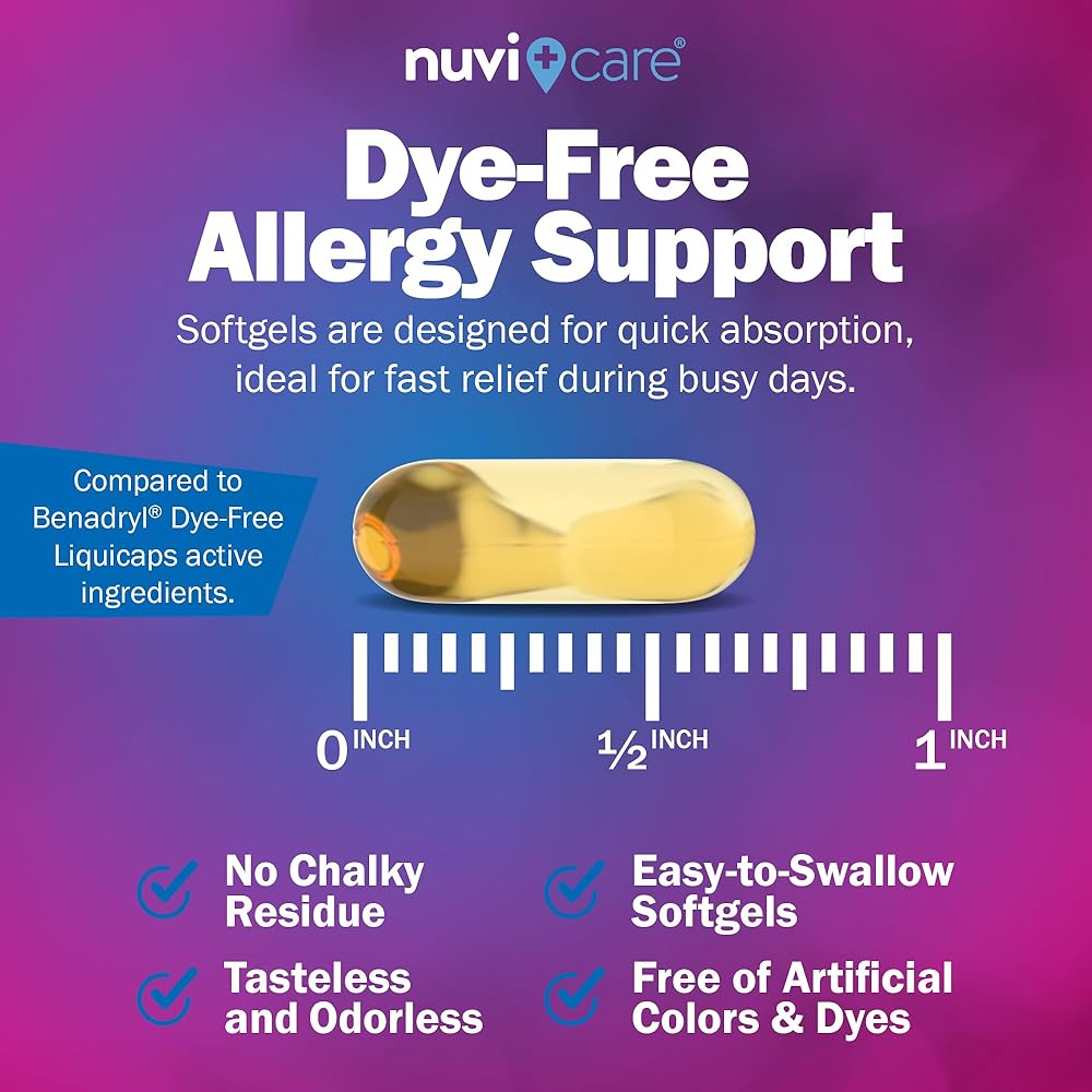 كبسولات هلامية ناعمة سريعة المفعول وخالية من الصبغة - احصل على راحة سريعة في شكل كبسولات هلامية نظيفة وخالية من الصبغة ويسهل ابتلاعها. تعمل أدوية الحساسية هذه بسرعة على تخفيف أعراض الحساسية، حتى تتمكن من العودة إلى روتينك دون أي إضافات غير ضرورية.