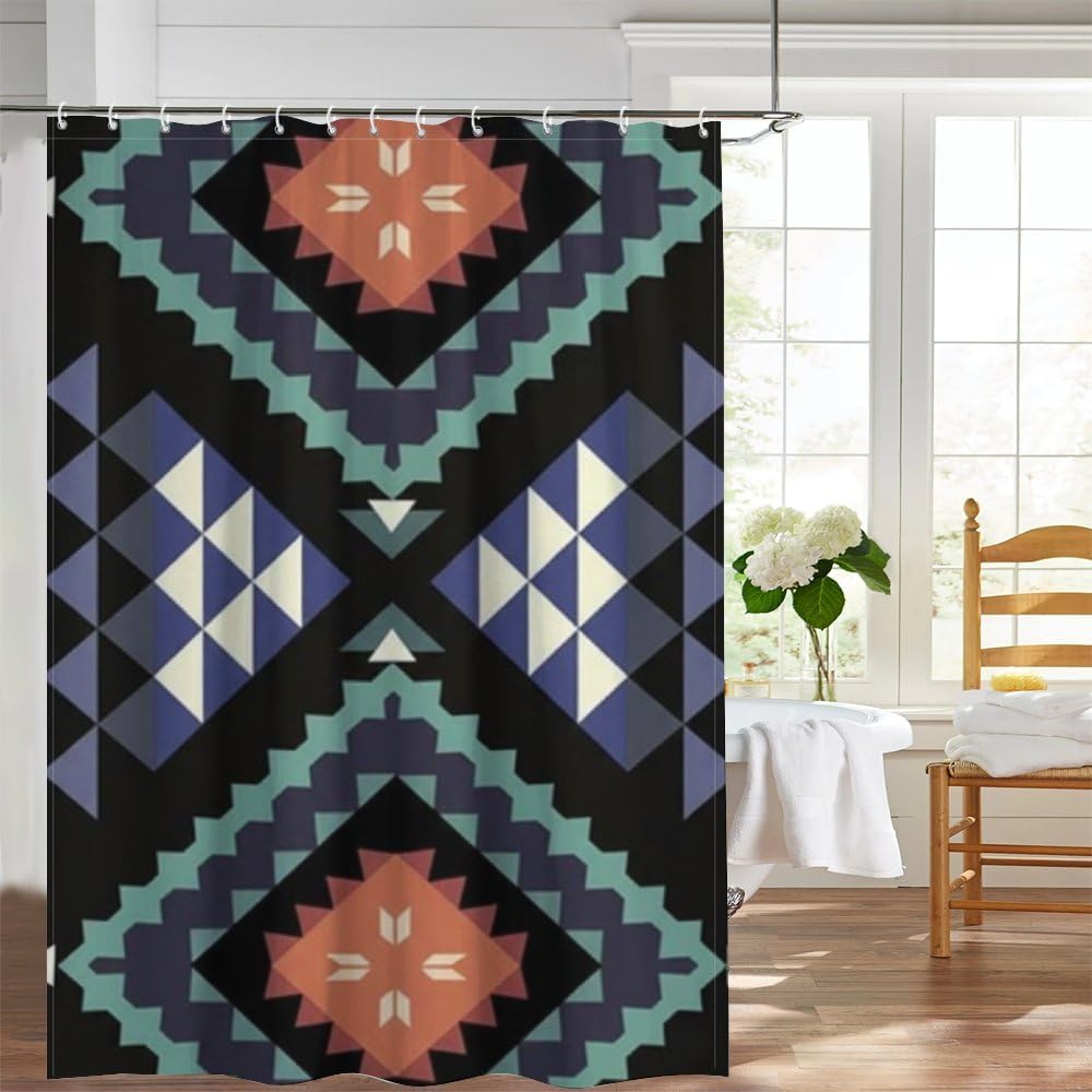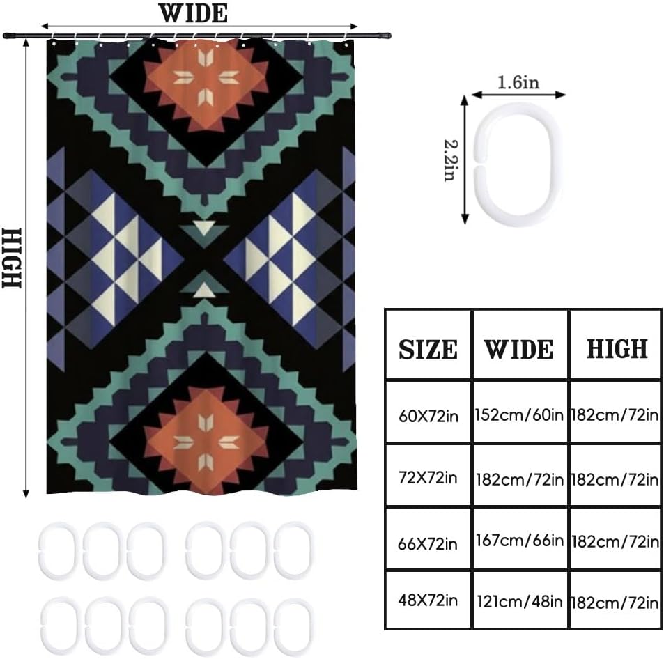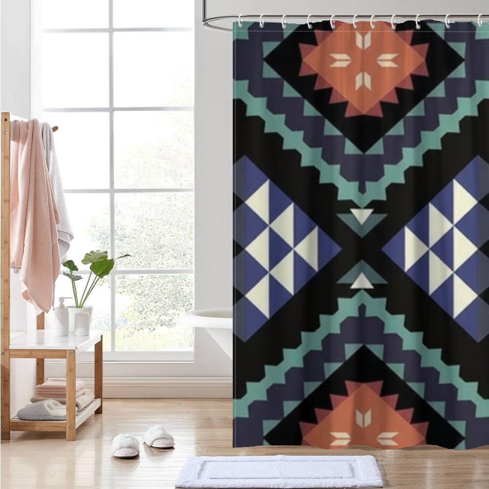 نافاجو القبلية الحافز ستارة دش طويلة مع السنانير، ستارة دش الصيف للماء نمط خمر، ستائر عطلة النسيج قابل للغسل الحد الأدنى لديكور حوض الاستحمام الرجعية 72 × 72 في