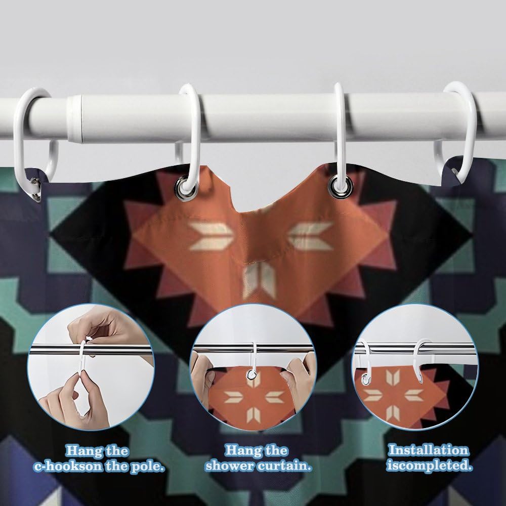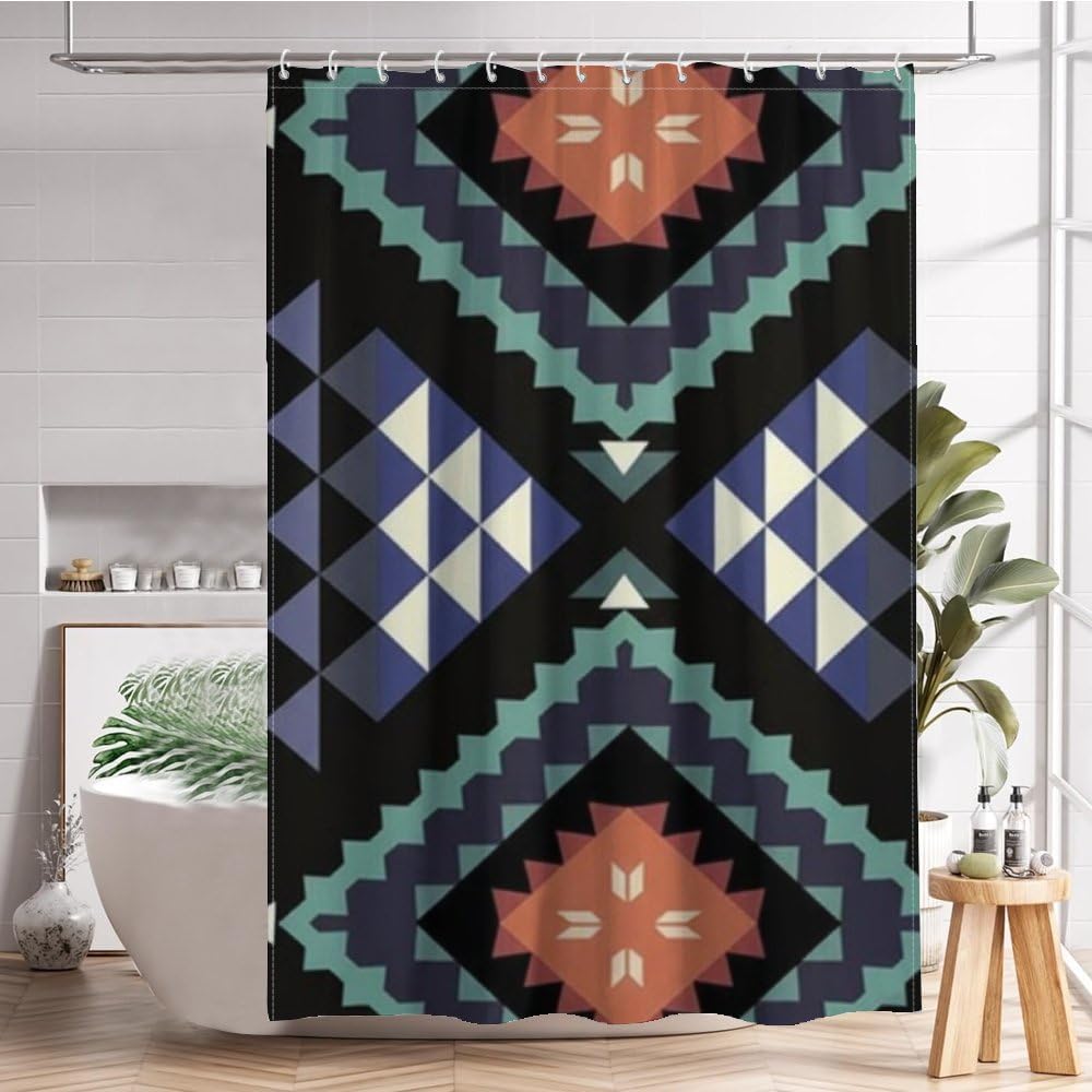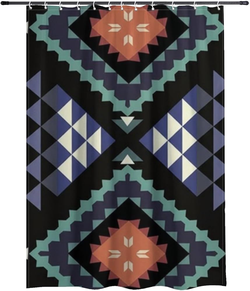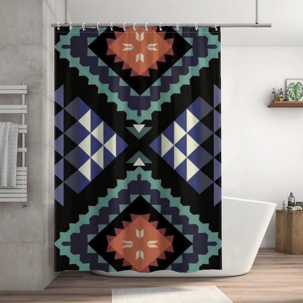 نافاجو القبلية الحافز ستارة دش طويلة مع السنانير، ستارة دش الصيف للماء نمط خمر، ستائر عطلة النسيج قابل للغسل الحد الأدنى لديكور حوض الاستحمام الرجعية 72 × 72 في