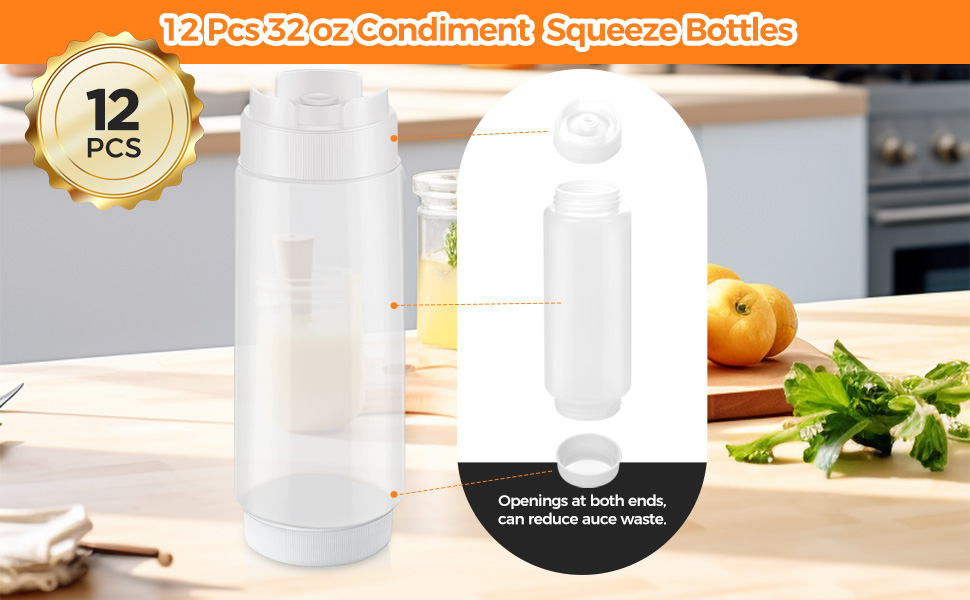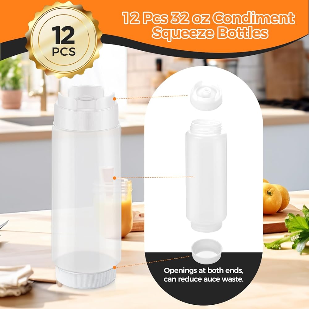 عبوة واسعة من 12 قطعة لتلبية الاحتياجات المتعددة: تأتي مع 12 زجاجة ضغط كبيرة بوزن 32 أونصة، مما يمنحك الكثير من الحاويات للمطابخ المنزلية أو المطاعم أو الكافيتريات أو المكاتب أو المساحات الحرفية.